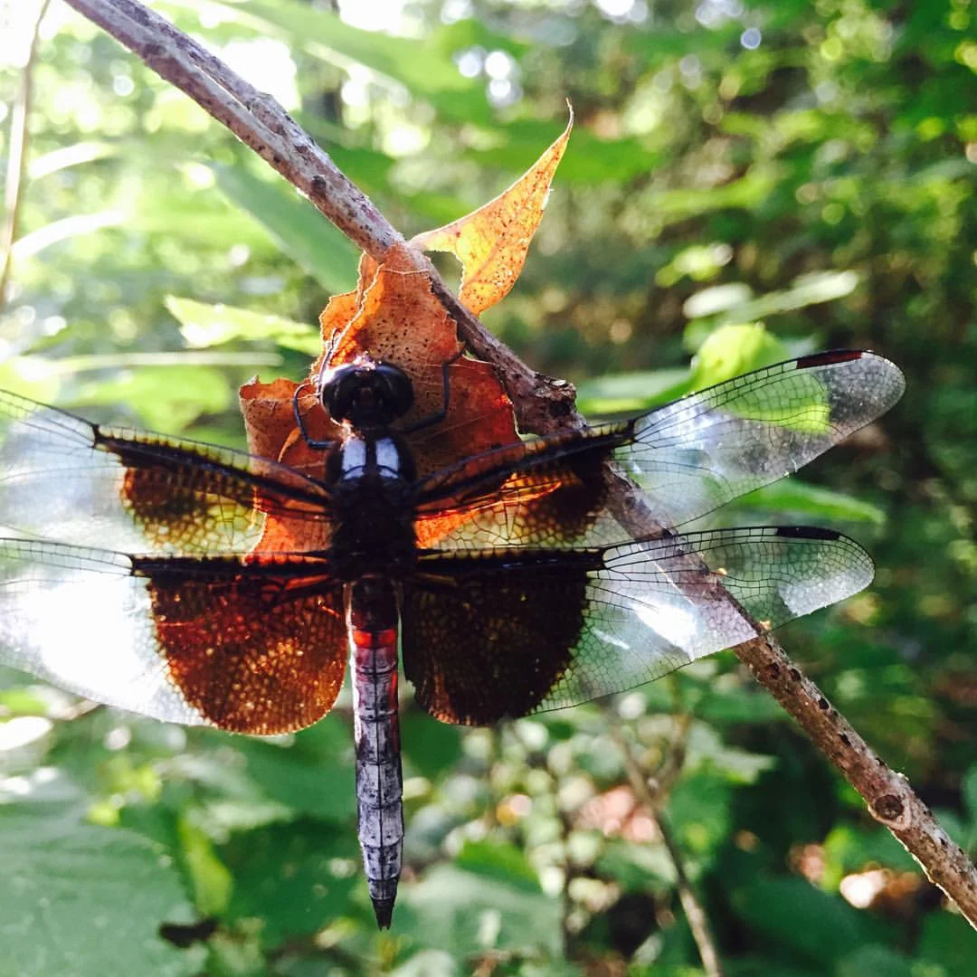 Then, out of the corner eye, in stillness on a browning leaf,