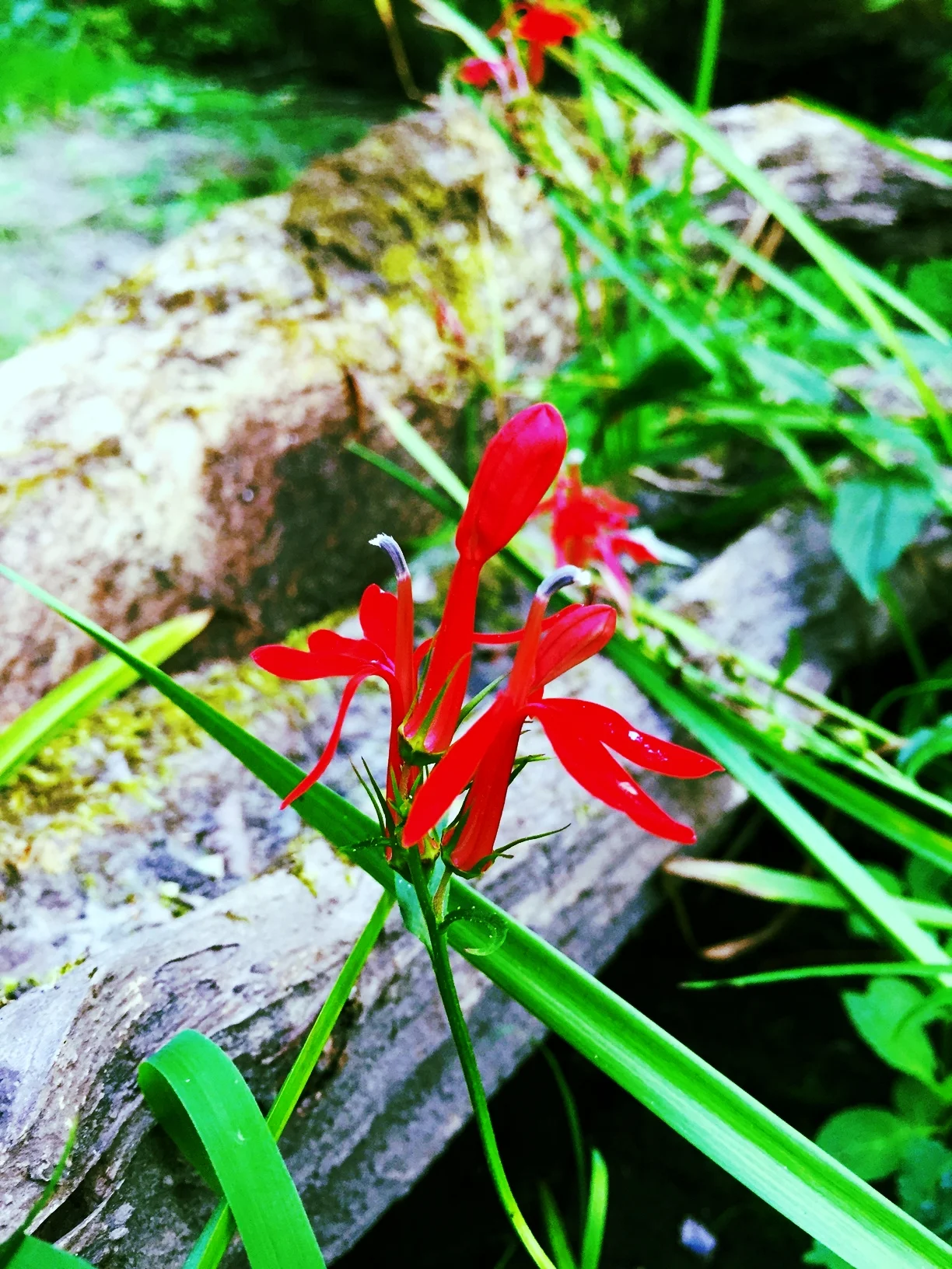 Last night I continued reading a beautiful little book about a river I bought a week ago and got to the part on page 82 about the cardinal flower, which happens to be in bloom still in the dry bed of the brook on the corner of our property along the Charles. I walk past it every day. One year many years ago, in a summer with drought almost like this one, I transplanted a few of these beauties to a shady spot near our house where I grow ferns transplanted from the woods. The next summer they brightly bloomed in their new home. And the next summer they simply did not and I have seen no sign of them there since.
