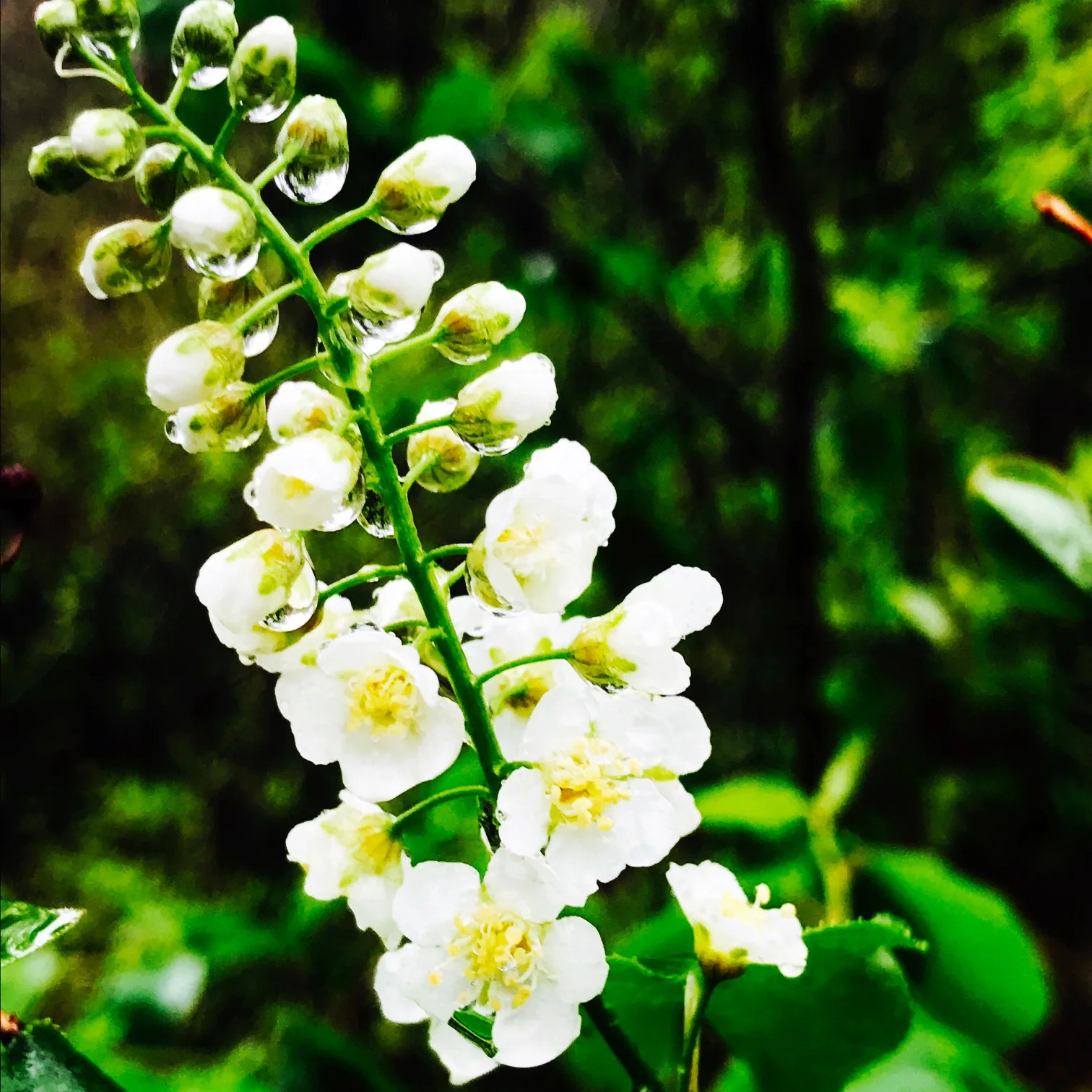 Sunday Sanctuary: Today is Mother's Day, a rainy cold one. But, my early walk begins with this brand new delight - a branch of white blossoms by the side of the trail. I don't know this plant's name. After returning home, I search my "Wildflowers of New England Guide," but there are so many white blooming wild flowers in May.