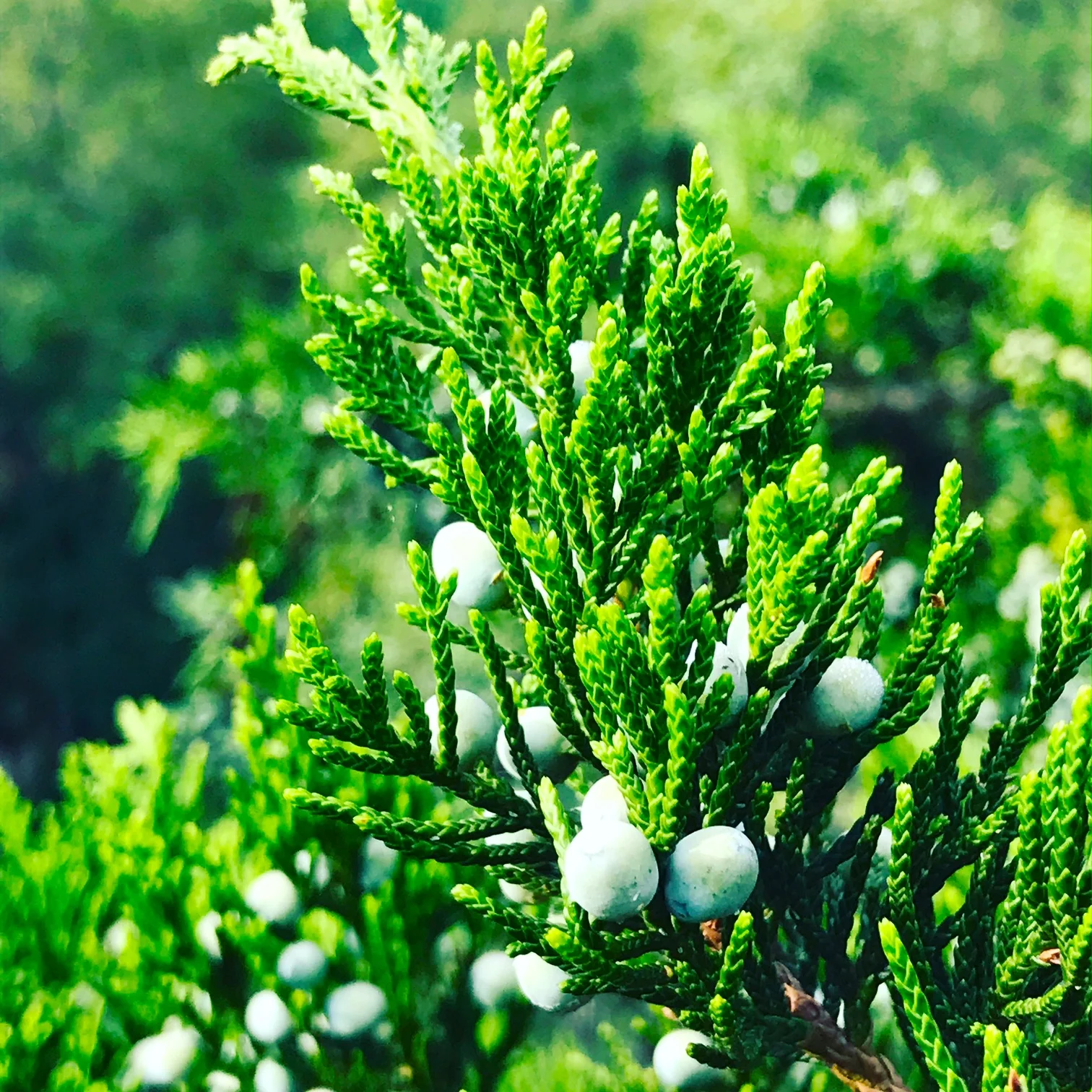 “Juniper berries. . .are actually modified conifer cones. A juniper berry is the female seed cone produced by the various species of junipers. It is not a true berry but a cone with unusually fleshy and merged scales, which give it a berry-like appearance. The cones from a handful of species, especially Juniperus communis, are used as a spice, particularly in European cuisine, and also give gin its distinctive flavour. Juniper berries have been called the only spice derived from conifers, although tar and inner bark from pine trees is sometimes considered a spice as well.”