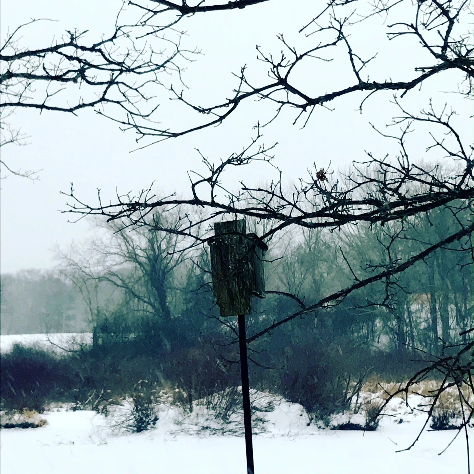 I want to beat the wind. Up and out early ahead of the impending storm to enjoy the ease of a final ski on pleasantly groomed trails. A light, steady snow is falling in minute flakes to freshen everything with a sense of peace in the stillness of quiet woods. But, the weather is forecasted to fill the land with more than a foot of snow to be blown into mountainous drifts by gusts of wind. There will be beauty and effort: inches and inches of snow will need to be shoveled from doorsteps and walkways. A blizzard blows toward the trees; branches torn and lost will not be recovered. Indoors, by the fire, I've been making collages for days and days; the canvas I ski over today will be buried under the layers of new surface. Sometimes when I've covered an entire surface I'm working on with new images or paint, I forget what I pasted on the layer beneath. In these woods, this morning's images are truly of this moment, now, and only now. I give thanks for rising early and witnessing this collage of images on the banks of the river Charles.