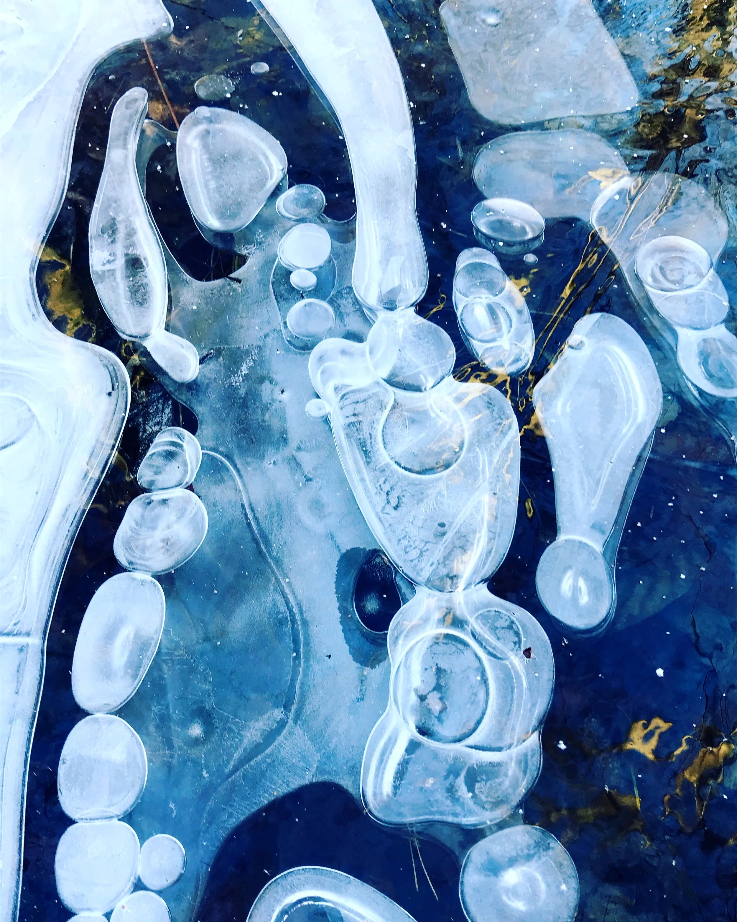 Remarkably, it’s colder than yesterday this morning. And I am happy, because the spots where the river has swelled onto my trail are now frozen and I don’t have to walk around them. And the brook, where it has made my usual trail impassable for two weeks, also froze, so I can cross and go my preferred way. And I was happy because of all the spontaneous, captivating ice art, so my walk becomes a stroll through an art gallery along the river and the brook that is making itself into a pond. I saw a woman reaching, reaching – what is she reaching toward, I wonder, and I know: she is reaching toward her freedom and delight in being sixty, knowing who she is and what she’s done and how she likes to be and what she wants to give.