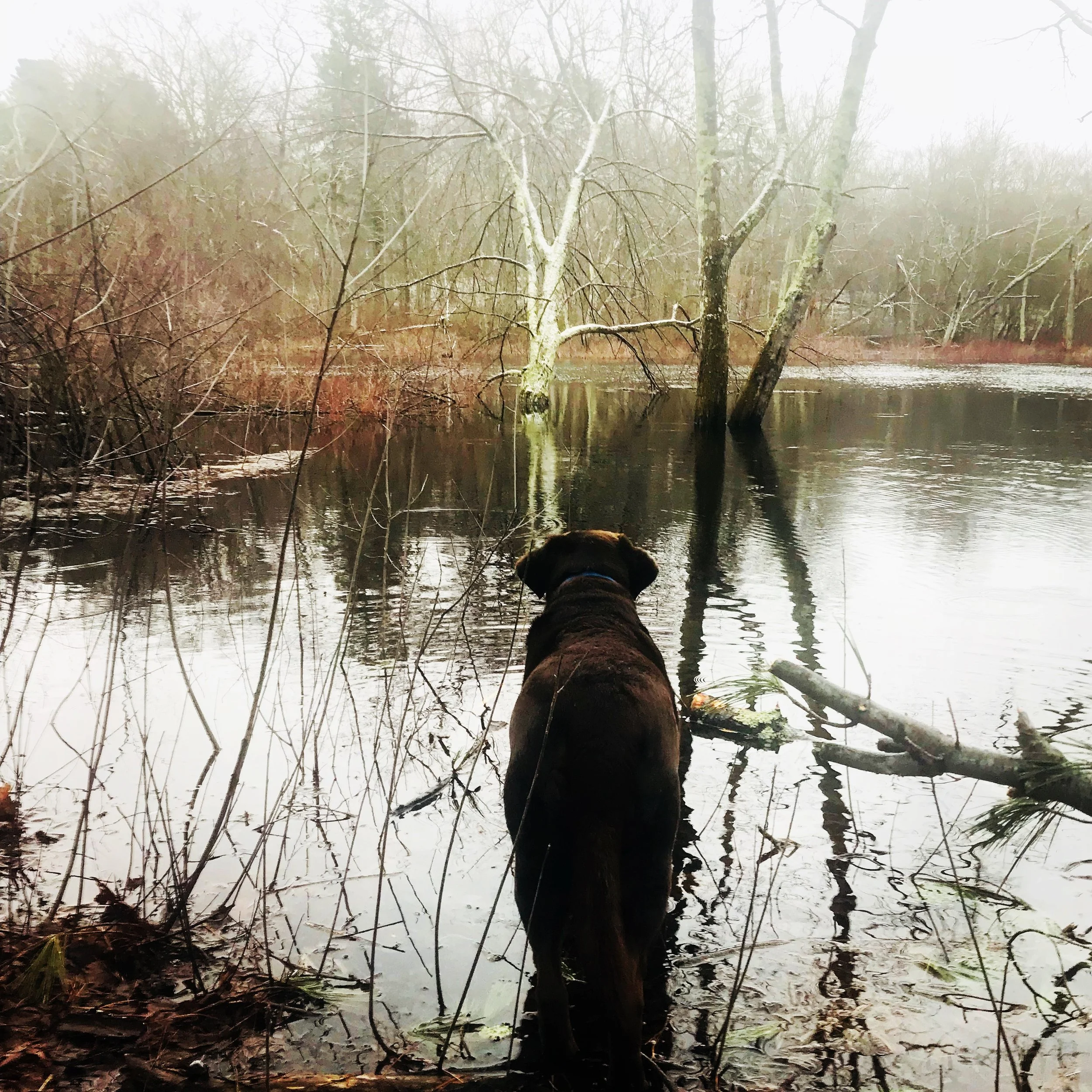 The river has overflowed its banks and its another day for storm. Charleston claims this territory, his river, his domain. I shorten our walk in the wet woods, it's a traveling day for me, once again, and the dogs do not know this yet.