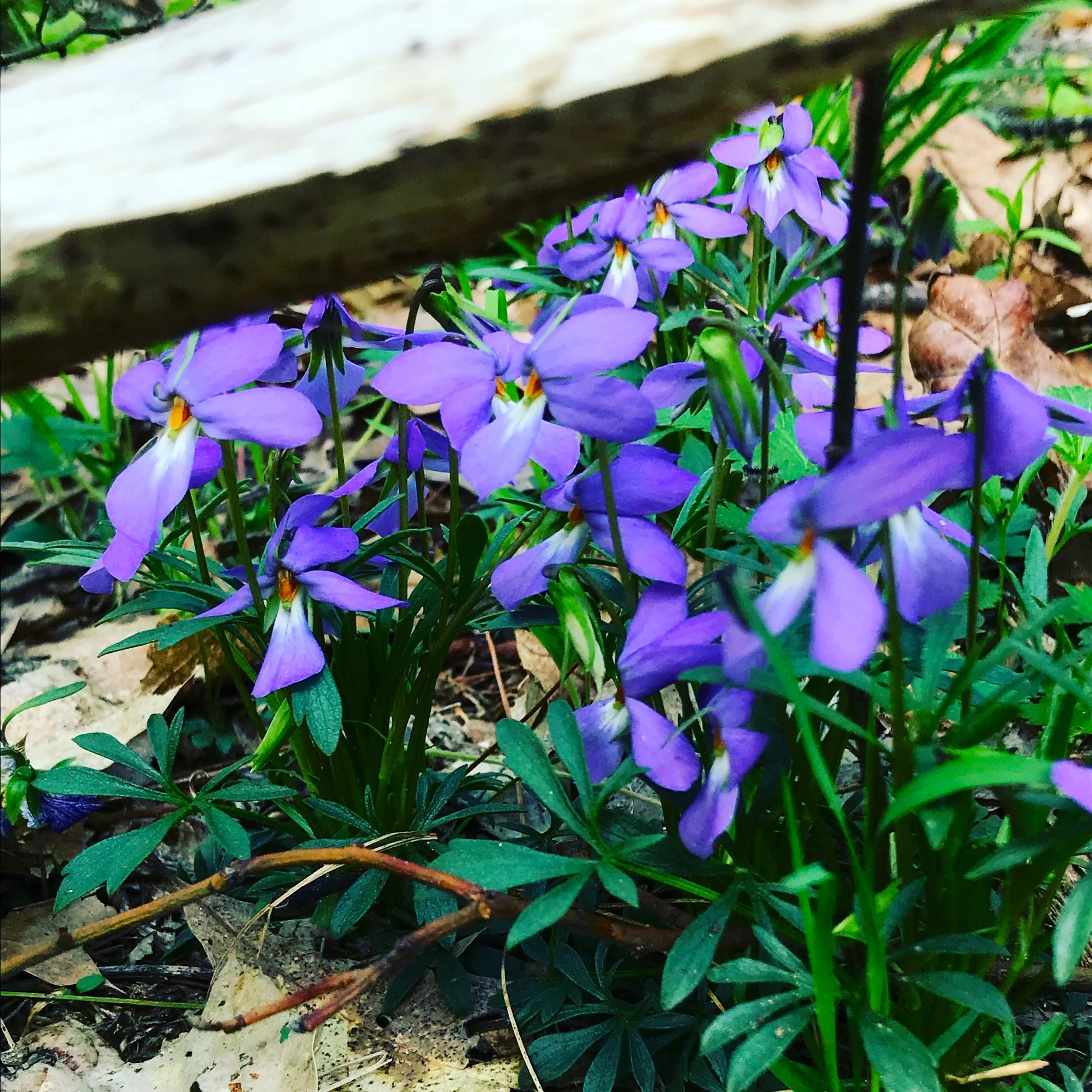 The violets are passing their peak; next week they'll be gone. The lady slippers are budding along the side of the trail in the leaves under the trees. I go to the woods early before it's hot. I'm looking forward to an uninterrupted writing day.