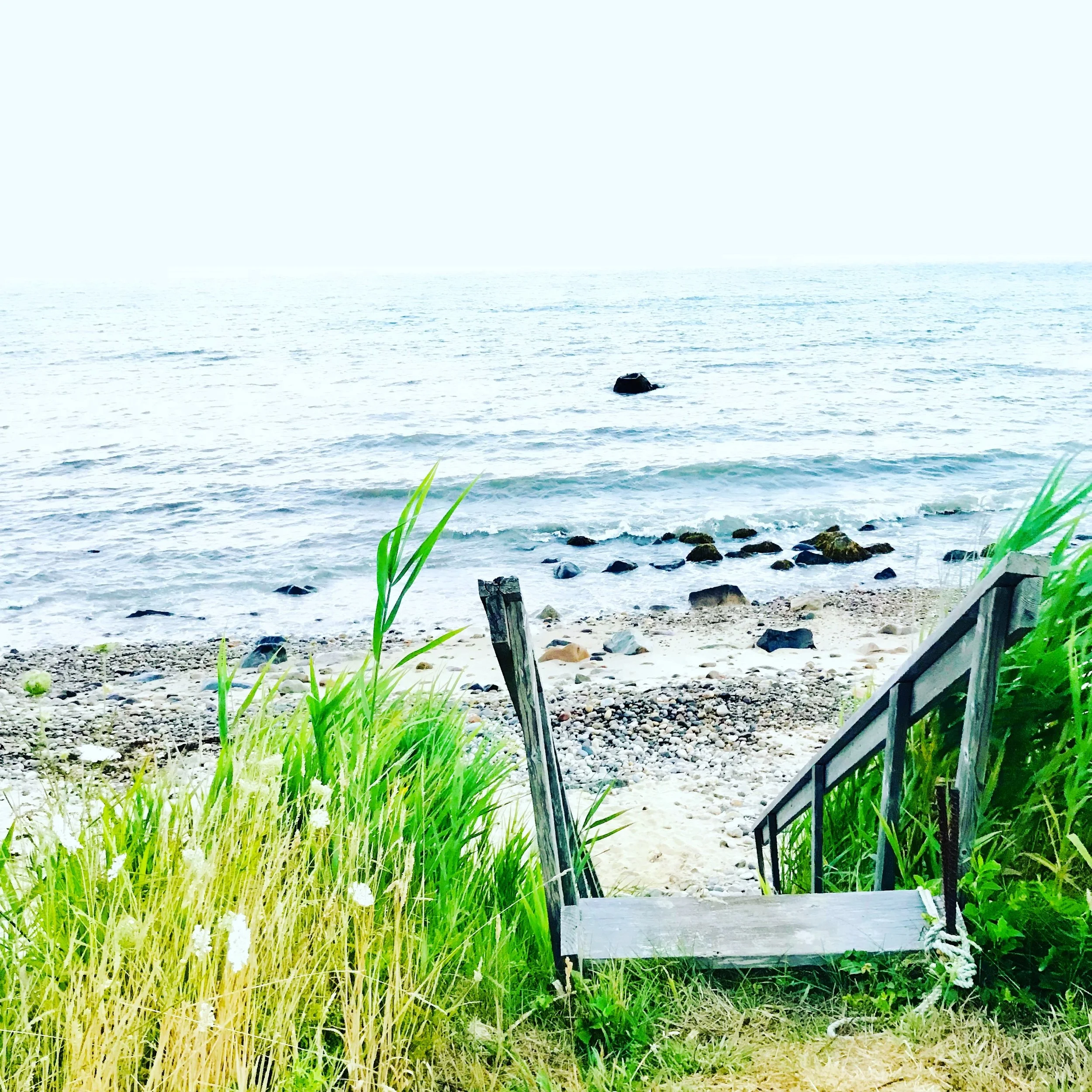 Because I have decided to go into Vineyard Haven with Frank at 6:00 a.m., I must take Charlie and Suzi for a short, early - too early - walk to the beach and back at 5:00 a.m. Bleary eyed, and before coffee, I trudge down the dirt road with my walking sticks, taking a shortcut. The dogs don't suspect anything too out of the ordinary, though. It's humid and I am dressed in a sleeveless top and shorts; the bugs chew at my face, my neck, my mouth. This is so rare – an unappealing walk. I am too tired and bug bitten to enjoy anything about it. Fortunately, the dogs dip quickly in the surf, I walk them over the rocks to Roaring Brook, they drink the fresh water, and we quickly return home. So, tonight, I am very much anticipating the delight of waking to a long, lingering hike at a more reasonable hour, with fewer bugs.