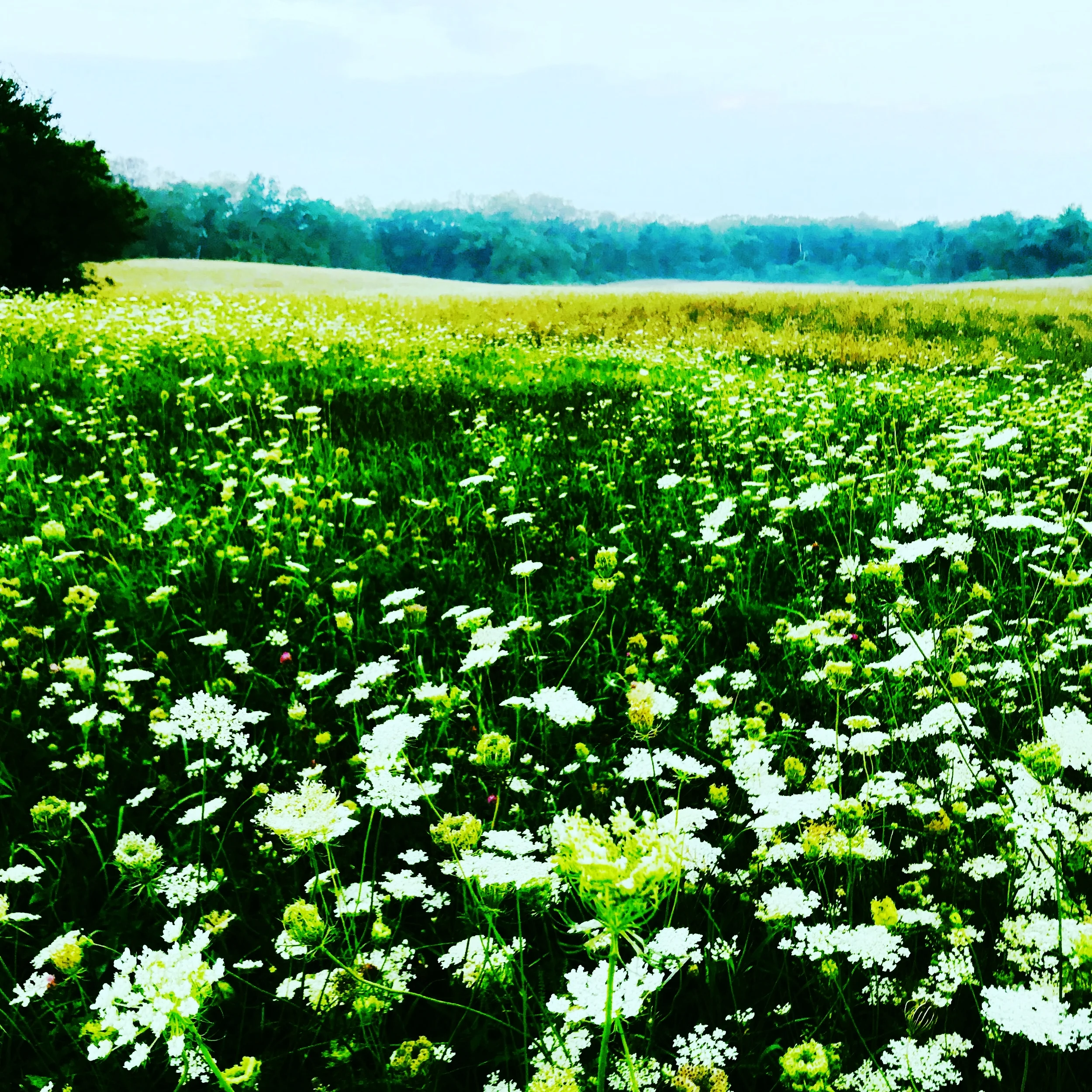 This morning, my walk started before sunrise in moonlight. Awake at 3:30 a.m., my husband leaving for airport, I woke early and was unable to get back to sleep. Restless. The dogs too. We drove up to Medfield State to watch the sun come up; I was avoiding the woods in the dark because I didn't want to run into a coyote. The sun rose over the misty meadow, and I felt peaceful after having awoken feeling acutely irritable. Everything fresh and warm, half lit and full bloom changed my mood and lifted my spirits. We walked long and hard before it turned hot. It wasn't a writing day, there were errands and e-mails and appointments and a special chat with a dear friend just returned from vacation. And especially, a long swim on the pond with my daughter in the hot late afternoon. I found an hour to work on a new poem to share in a poetry group online tonight. My poetry pals, one in Texas, one in Mississippi, I met them almost a year ago at the Tupelo Truchas poetry retreat and we meet monthly. I risked bringing this brand new poem, such a rough first draft, and they were kind and helpful and I saw how far I have to go to get to what I'm getting at - but I trust I'll find the jewel I feel is hidden in it. The poems they shared were exceptional and enriched my evening, even though I'm overtired and thought I wouldn't have the energy. Instead, our time working on poems gave me energy, like the meadow, this morning, in full bloom.