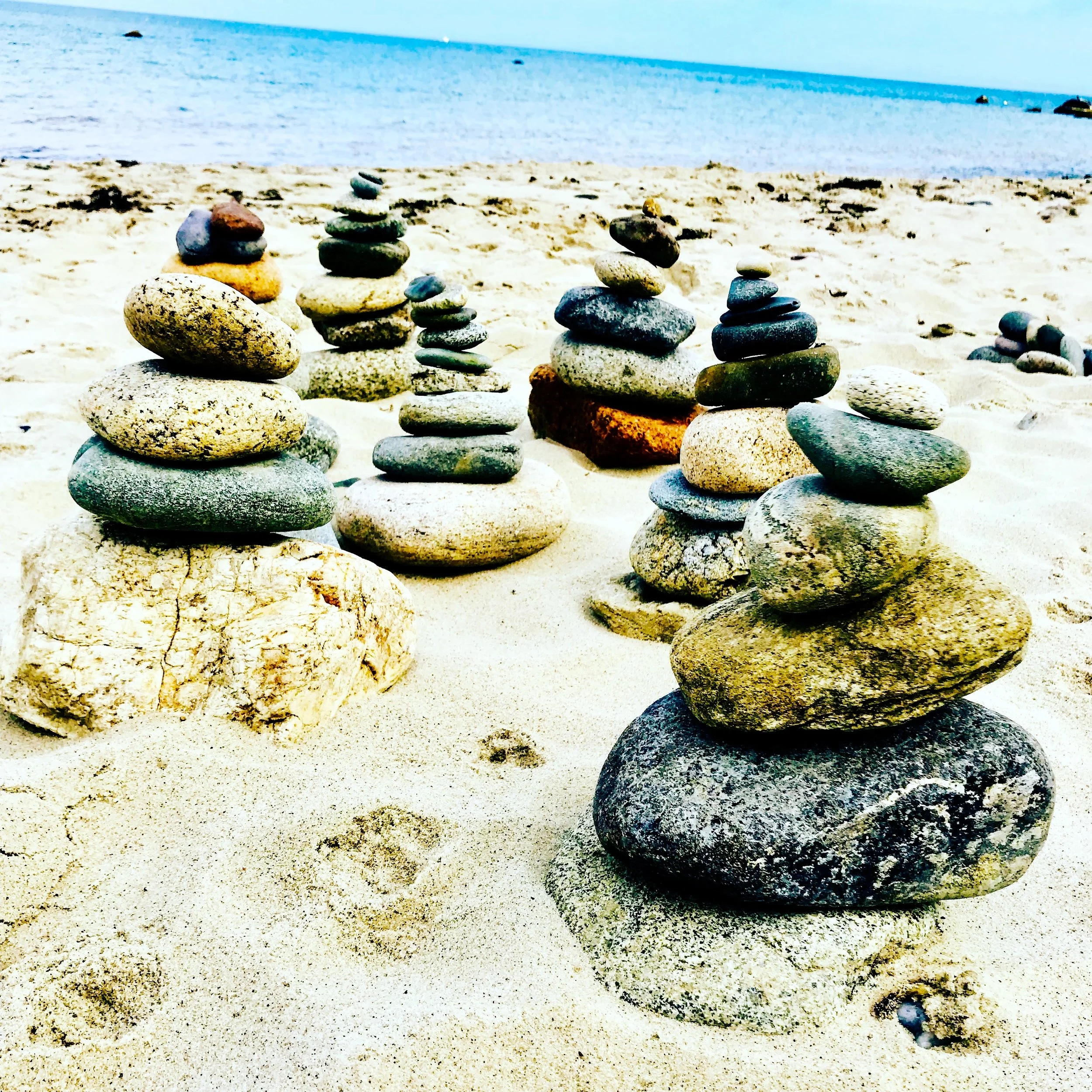 I didn't assemble these little cairns or rocky sculptures, but I did enjoy taking their whimsical picture this morning on the beach. A friend comments on Instagram: perhaps mermaids came ashore and stacked them up while the world of human beings slept last night. Yes, I like this fanciful idea that mysterious sea creatures step ashore at night and play under the moon while we sleep, so we may wake to find, not just a deserted beach, but a place of whimsy and wonder.