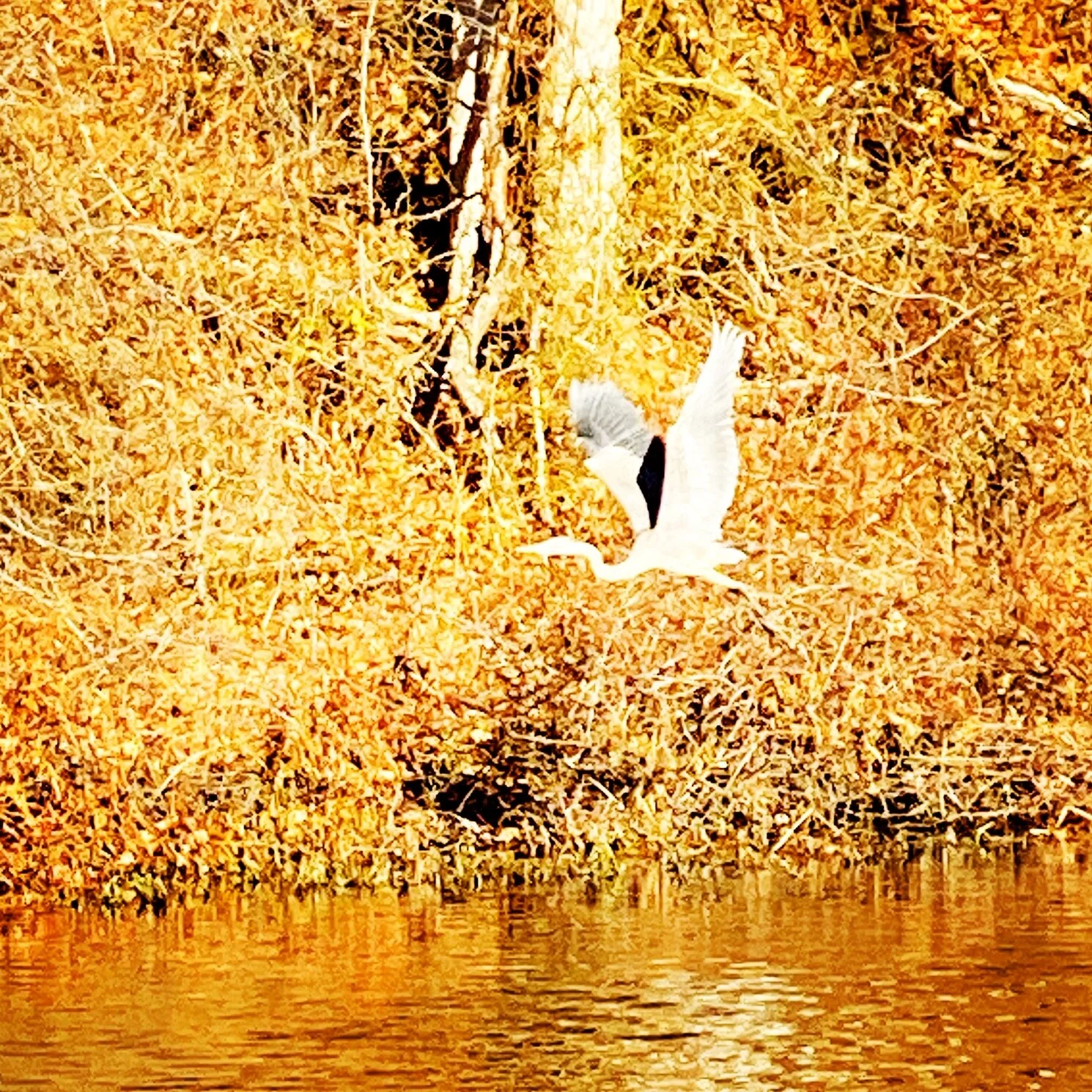 Heron lifting off, Charles River morning