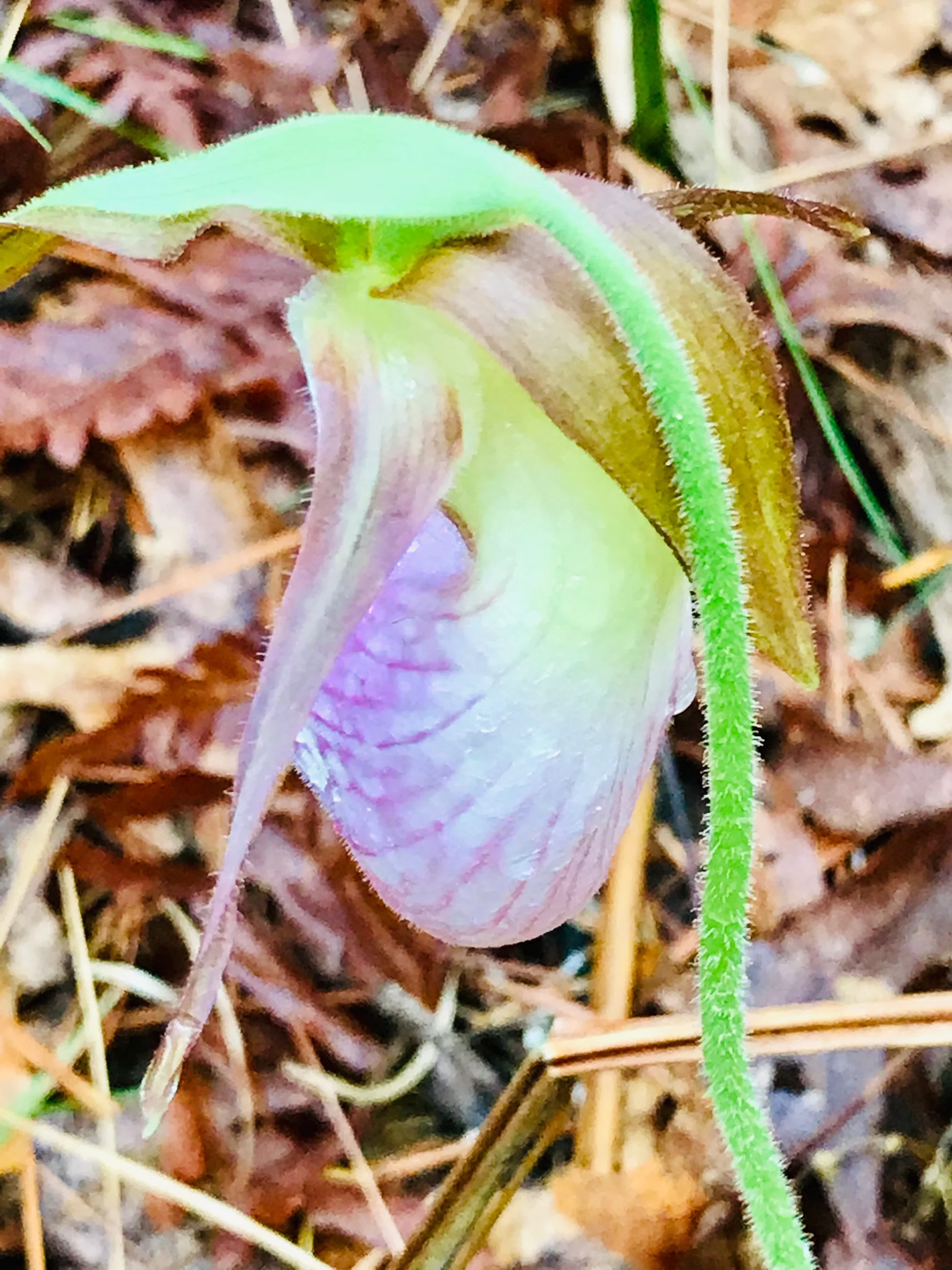 This morning I worked on my poem before walking in Sunshine. Tonight I am learning how to post this blog from my phone since my computer is having an overnight at the Apple store. I miss my computer. I got a draft of my poem and wanted to take it to my poetry group but I was too tired to go which never happens. Frank worked today for a few hours. Now the lady slippers are coming crazily into bloom all along lady slipper row. Just before my computer broke last night I went down to the basement to put some pig food in the refrigerator to drop later at the farm and when I was about to climb back up the stairs I saw in the dark dirty crack between the carpet and the step a glint of silver and black string. My favorite necklace, recently lost, about one week ago. I bought it from an artisan at the Chilmark flea market and wear it every day. I tied it back around my neck.
