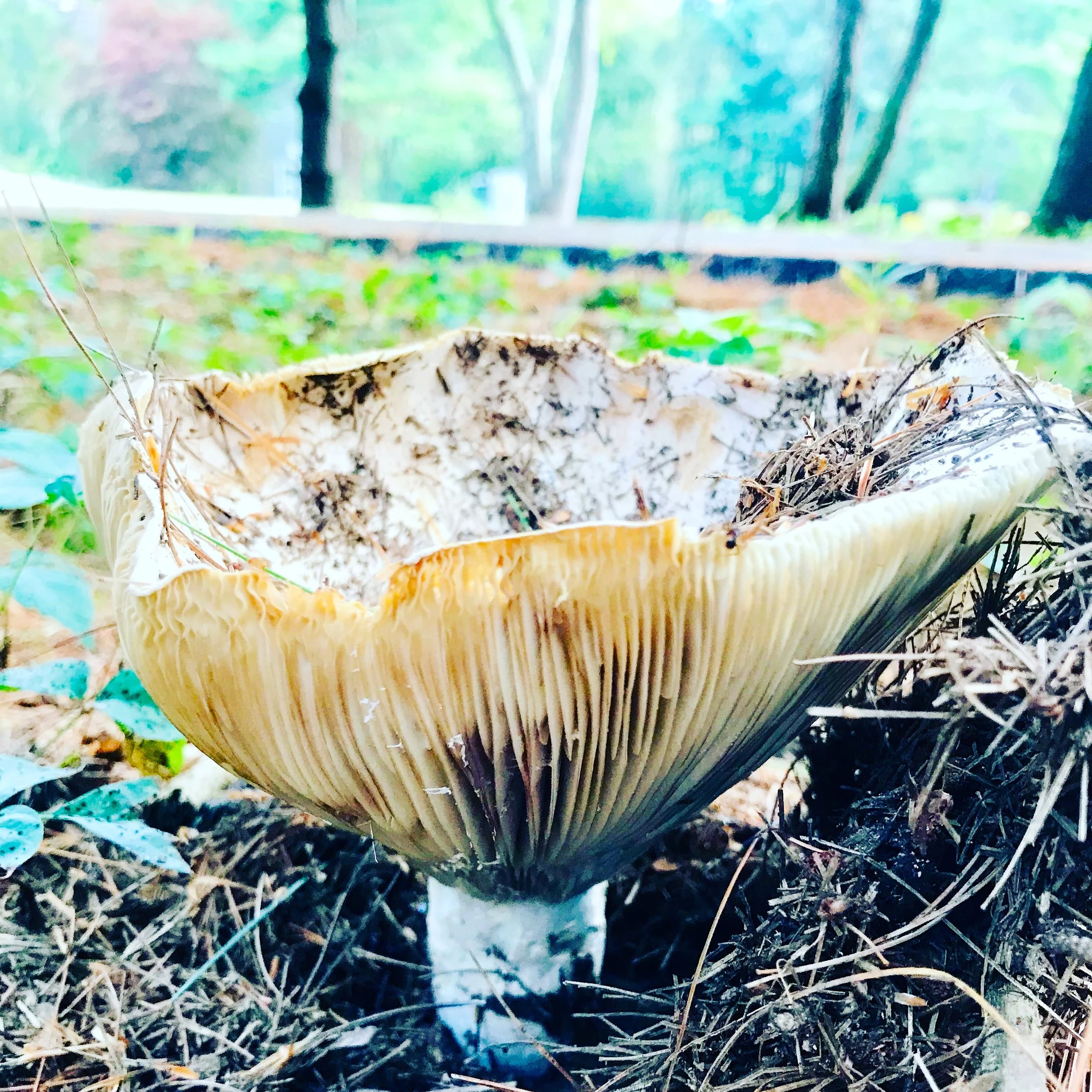 The mushrooms are sprouting up under the trees and in the shaded grass, like this chalice one bursting up under the pines. We walked for a good long walk into the woods and through the wetlands where the cattails thrive in the soupy, swampish wetlands that spill over the banks of the Charles. I feel the changing of the light. Today, I was allowed to be tired, physically. Still, I stayed busy. Just busy with tired. I prepped for my Wednesday morning writers which resumes tomorrow. Choosing a poem and writing a prompt and warming up to being present and attentive and conscious and aware of the needs of this group going into its fifth year. Can it be? Yes, we’ve completed four years of these weekly Wednesdays. These chalice mushrooms make me feel as if I’m in church outdoors in the sunshine. And I am; it’s a walking religion. As Thoreau described: