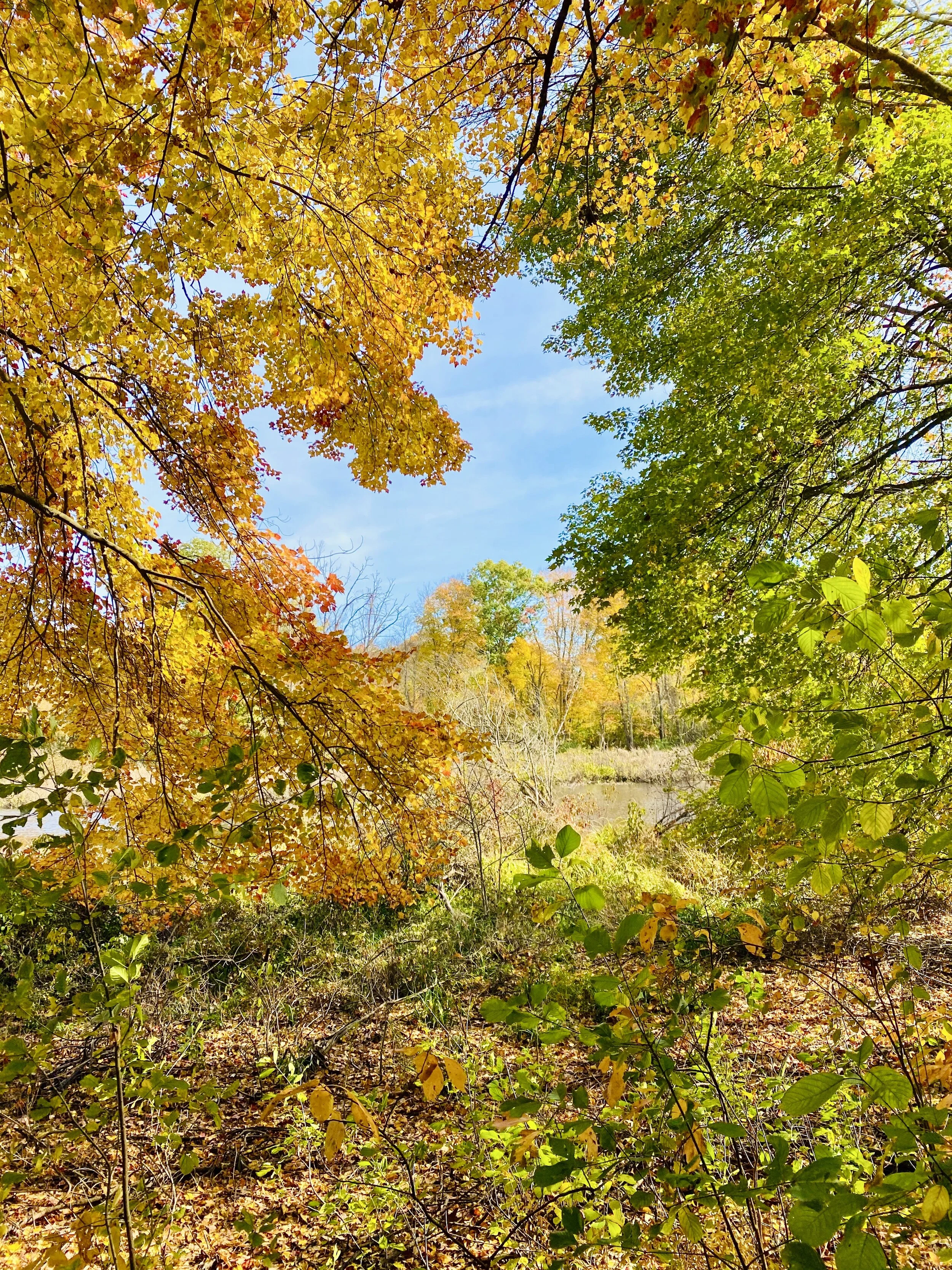 In the afternoon, I walked to the river for the first time since Thursday, and the leaves framing the landing where I always stop first have turned to rust. Perhaps the leaves are past their peak. I am so happy to be home and in my woods, free to walk for as long as I want in the fresh bright air. The dogs are happy too. We take our time. I pass the brook and it’s running! Red, yellow, green, rust leaves of all shapes and sizes float on the surface and will sink soon. We have had our needed rain. My son and his special one come, after my walk, to the deck for a family visit. We are masked, and physically distant, but emotionally present. All my children home, the sweetest hour. I am exploding inside, giddy with gratitude. It is, as Andrew Taylor writes, a rolling down the hill joy. The granite steps off our deck land at the top of a very gentle slope down the lawn. And yet, it is a slope. For a child, like a hill. When my nephew Lucas came and visited one afternoon a couple of months ago, we played outdoors and he repeatedly, giddily, hollered with joy and rolled and rolled down the hill. He will come to our house some day when he is older and the scope of his vision changed he will be startled to find the hill he remembered rolling down with such glee is really no bigger than a mild slope. Still, it doesn’t matter. It’s a hill for now, a hill for rolling, a hill for hollering.