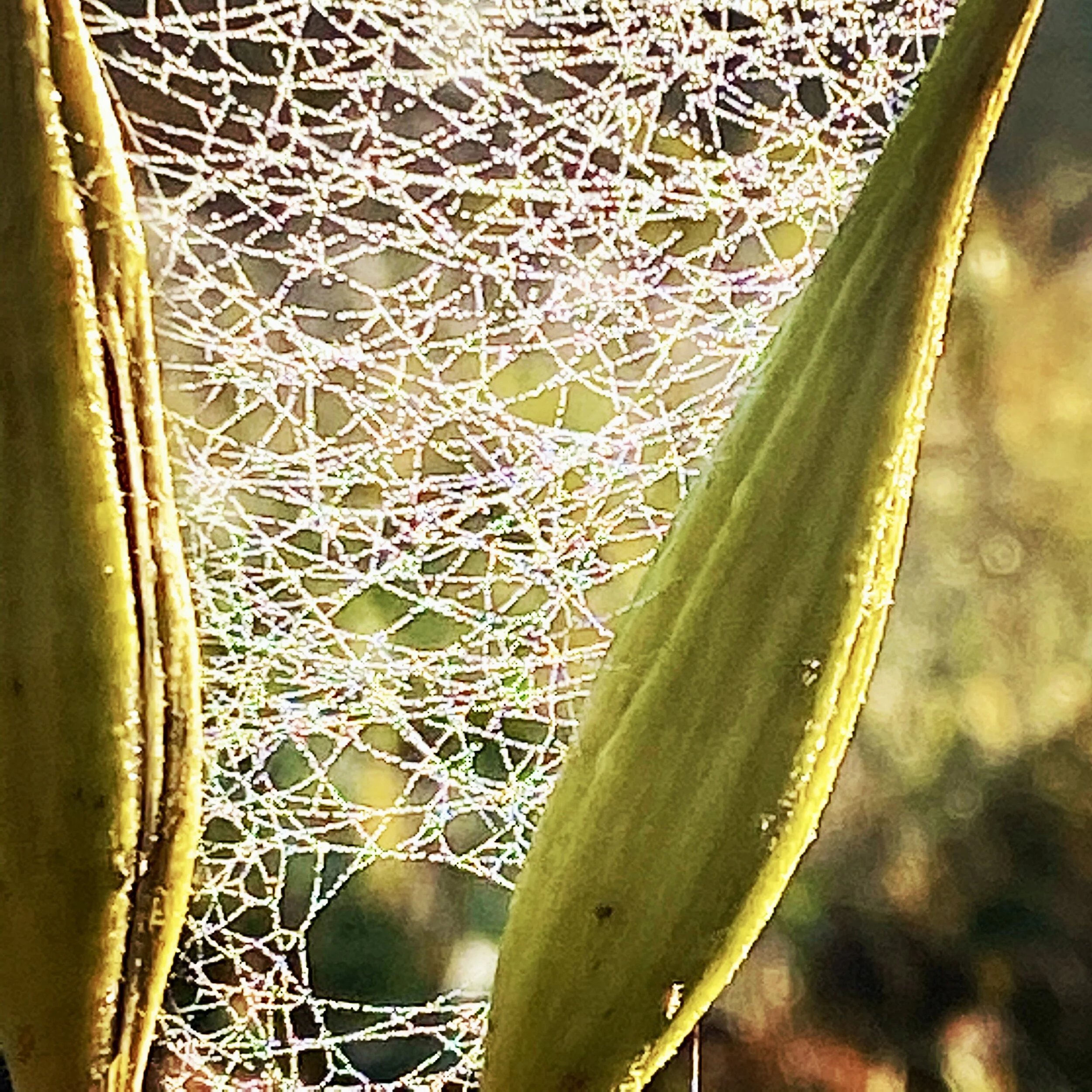 When I am in the wetlands, early, I feel the cold, moist crumple of leaves and ferns and weeds under my feet. We were alone in the silence, Charlie and me. We were taking our time. There was so much to bend to, examine, appreciate. And the wetlands were a gallery of spangled webs strung between stalks of milkweed and branches of leafless stalks. It was a Halloweenish surprise. All that glittered. The milkweed stretched open its pods of brown seeds and fluff. It was a day to appreciate the earth. My favorite, these wetlands. Soon enough, the ice will form! Hold our weight! Change change change. Indoors, I let the fresh air blow through openings. It was a busy day, with precious moments. I led the open mic for the IWWG and hosted Vanessa Jimenez Gabb as our featured poet - wonderful! - and the readers in the open mic, a warm and wonderful afternoon that ran long. And, then I emerged to find outside the front door a vegetarian lasagna baked with love and skill and generosity and surprise by a dear neighbor and friend. It was delicious and filled us up.