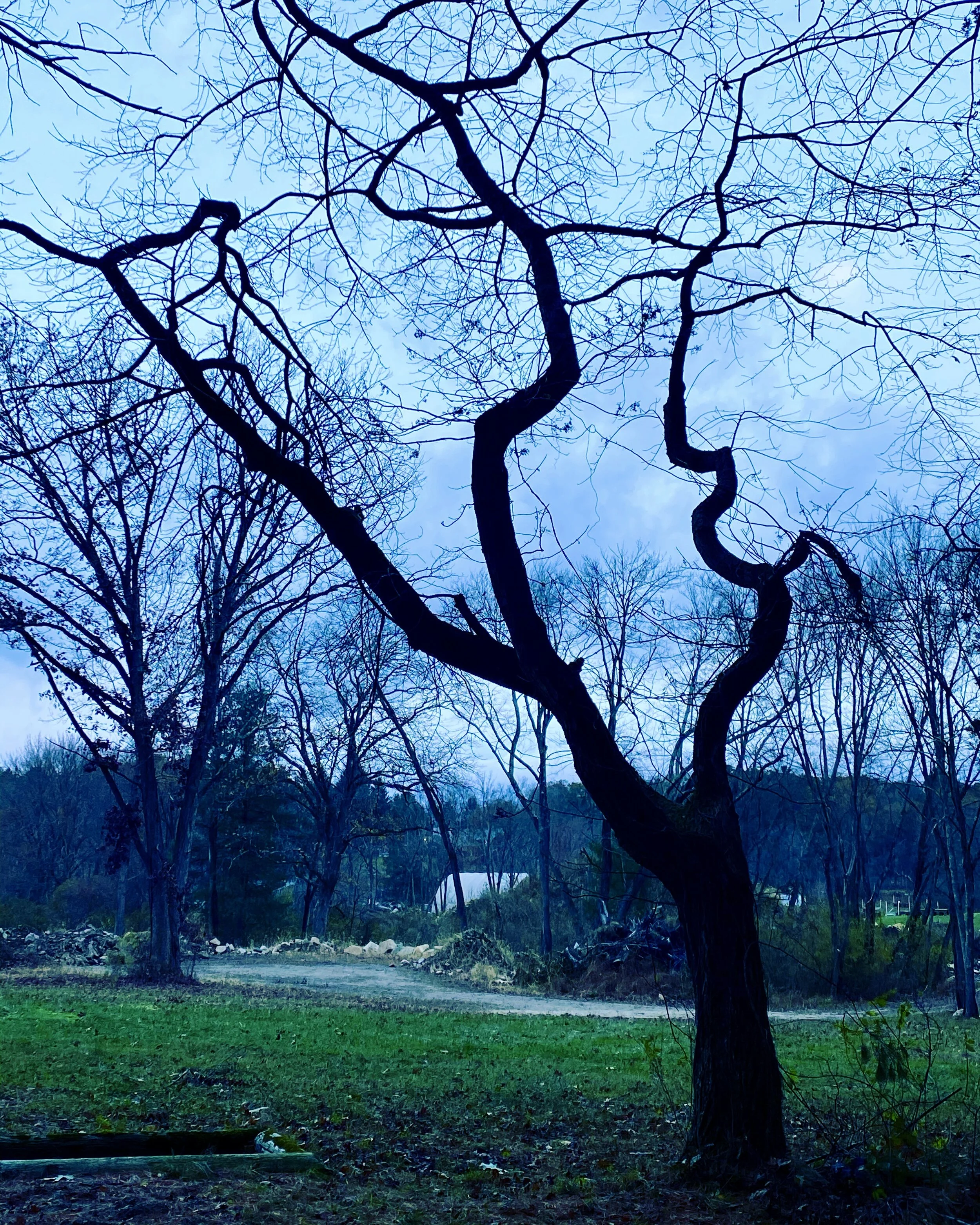 At 3:00 a.m. I woke, two hours before the alarm I set and stayed awake. Voting day. I got out of bed at 5:00, loaded the dogs in the car, arrived at the Town Hall by 6:00 a.m. and the building was dark. Nobody in the parking lot but me. I checked the sign on the door; the notice I’d read online was wrong. The polls wouldn’t open til 7:00. So, I drove to my old neighborhood, the woods I walked on the other side of this small town, and parked. Charlie was thrilled. It was just getting light. We left the car next to the cemetery, crossed the narrow, vacant, tree-lined street and went into the familiar woods. The dogs are excited about the change of plans. I can think of no better place to me than among the trees on this momentous day, under this soft, enchanting light. When we return to the Town Hall, there is a little line of masked people in line ahead of me. It’s a very tiny wait, and then, so happily, my ovals are blackened, my votes are cast. It’s a day of challenging focus. But I sit and try to write a poem for Thursday workshop. I’m stuck. These weeks off from my Thursday workshop have left me cold, I must warm up. I cannot think of anything I’ve started that I want to work on, or anything to start. But, I don’t give up. I take up the draft of a Martha’s Vineyard poem I brought to the last workshop I went to with this group. It’s in bad shape. But, it’s what I’ve got. I wrestle with it for a good amount of time. I go back through all my notes, and I’ve made a lot. Finally, this helps. I feel as if I’ve gone back to the drawing board. I’ve made a new start. It’s not there, but I have some time tomorrow and I think I can improve it. I am finding my way, not giving up. In the evening, as the polls begin to close, I set up a Zoom with some friends to have some laughs, share some anxieties, begin the long night in a cheerful frame of mind. Now, who knows if I will sleep much. But as I close my eyes, I will visualize being under the enchanting spell of morning trees.