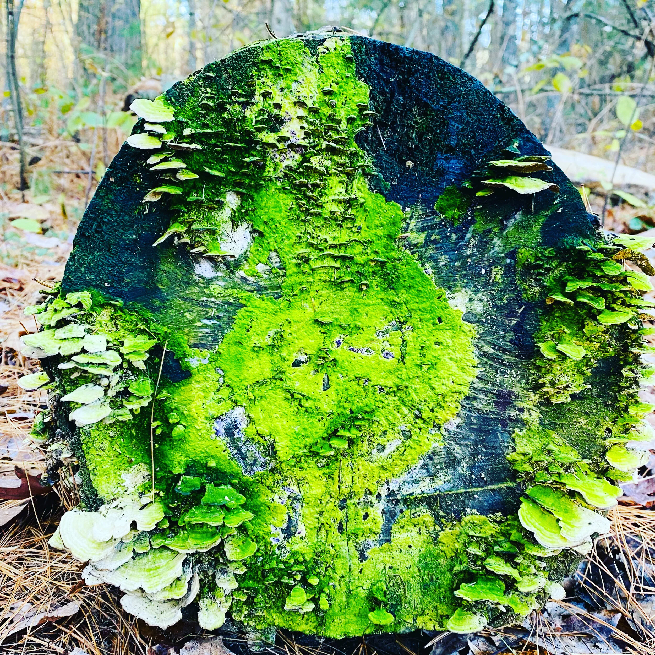 Stumbling, overtired, into a new morning, and my mask on and shorts and a t-shirt, into the backward upside season, into the woods, past the brook, over the railroad tracks and past the swamp and to the meadow, wide open, sunlit, warm, surrounded by trees and through the dried Queen Anne’s Lace to meet my friend. We cover so much ground with our feet and tongues and minds and hearts. I have woken up. At the river, the bird on the birdhouse. Patience, patience. And the moss, so slow growing, on the tree trunk. Patience, patience. There is, still, a mystery to be solved in this day: who will lead? Then, we must part. I take my time on the way back, I’m not hurrying now, and I can stop and see the leaf impressions on the railroad ties, the golden stencils. Leaves blow and fall and stick to surfaces, the rails, and it rains, and they are damp, and they disintegrate, but still. They were here. They are beautiful and gone. What a splendid day. I am watching when the election results are settled. I must have a nap in the afternoon, and then my youngest comes. She wants to have a bike ride, a ritual we began four years ago on election day. She has her trail bike in the garage. I get mine out, unused for a couple of years. The breaks are weak, the front tire needs air, it’s rusty, but fine. We go off into the woods in the sun, riding over the dead leaves and tree roots, Charlie running behind us. We ride to my friend’s dock. It’s time for another plunge, she wants to plunge with me. Charlie fishes at the lake’s edge, and we dive into the frigid water, splashing and hooting. Now we share a new ritual too. Tonight, with our daughters and my daughter’s boyfriend, we watch history being made. My youngest is tearful. She is seeing a woman leader like she has never seen one, not like this before. And she is full of hope. And there is still plenty of last night’s carrot cake to feed us all.