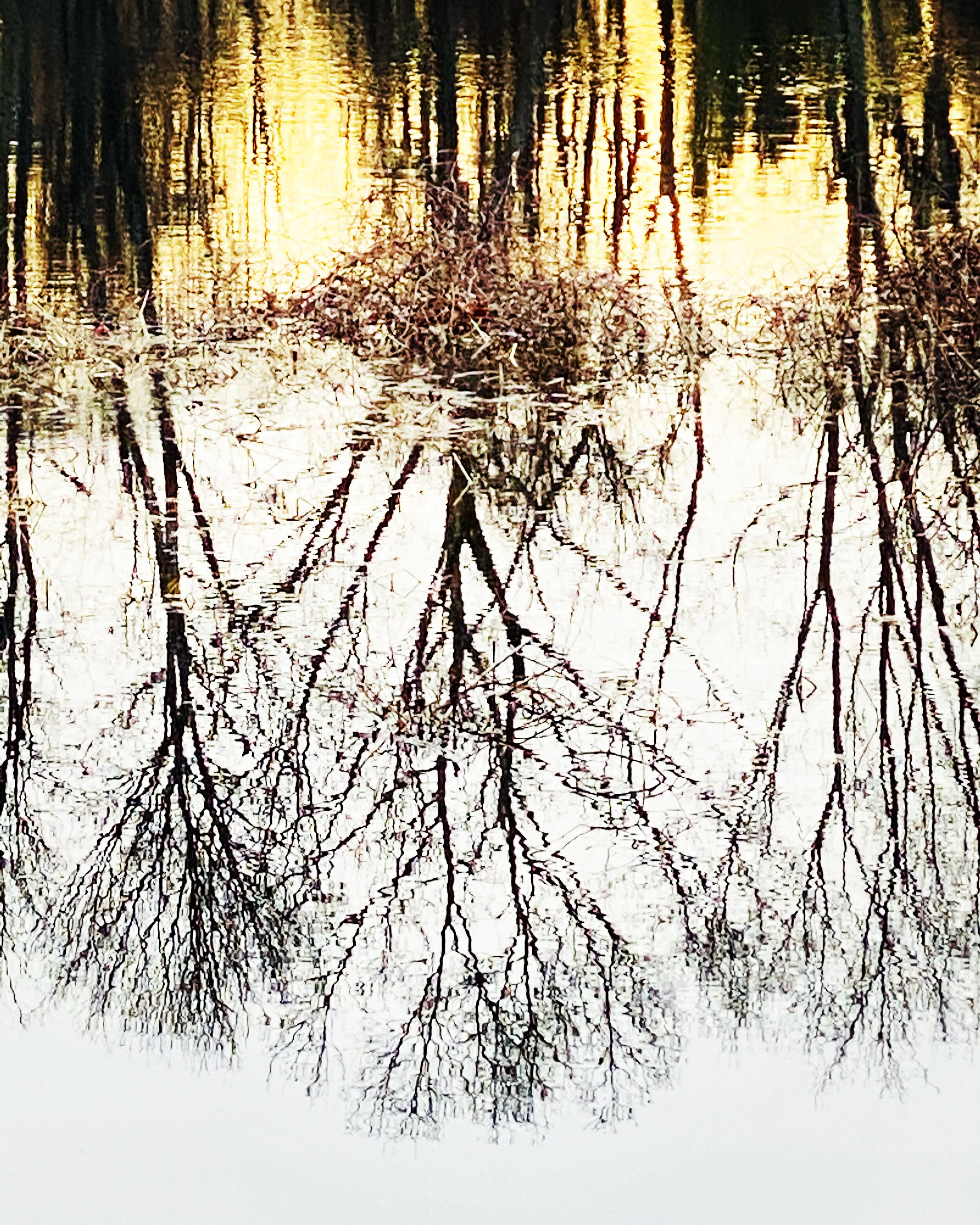 Awake too early, into a busy day of presenting, and the excitement of thinking about the unknown: how will these events go? I went out into the morning to the river, its reflection, and the ball of sun beaming from a sky growing blue. I felt quiet, thoughtful, aware and present. I moved slowly, I looked at everything. I looked until something beautiful surprised me and drew me in, something bright in the world of brown and beige on the ground, the patch of bright red leaves in the dull and broken meadow by the crumbling ages old stone wall: the wild low bush blueberry leaves. A very cheery patch. I knelt into the blueberry leaves and felt enlivened by their energy in this season of almost winter, well past their bloom and fruit. Poor bushes, they never get their berries. The white-tailed deer eat them before they have a chance to become: blueberry. I had, before my busy afternoon, a lovely visit in the yard with my dear friend and her lively puppy. And Charlie, after these first few months of not wanting much to do with him, welcomed the play date. He wasn’t at all snooty, he was wiling to be friends. The afternoon webinar on literary friendship that I moderated for the Transformative Language Arts Network went so well, was so interesting. And then, I moderated this evening an event I had planned for the IWWG, inviting True Story Theater in to do playback theater with members of the Guild. Wow. It was amazing to co-present with my daughter two nights in.a row. The stories shared blew me away, and the playback artistry was exquisite. And now the rain is pouring down in the black night outside my window. Who knows if I will wake to rain or snow? I will be grateful to wake into any weather.