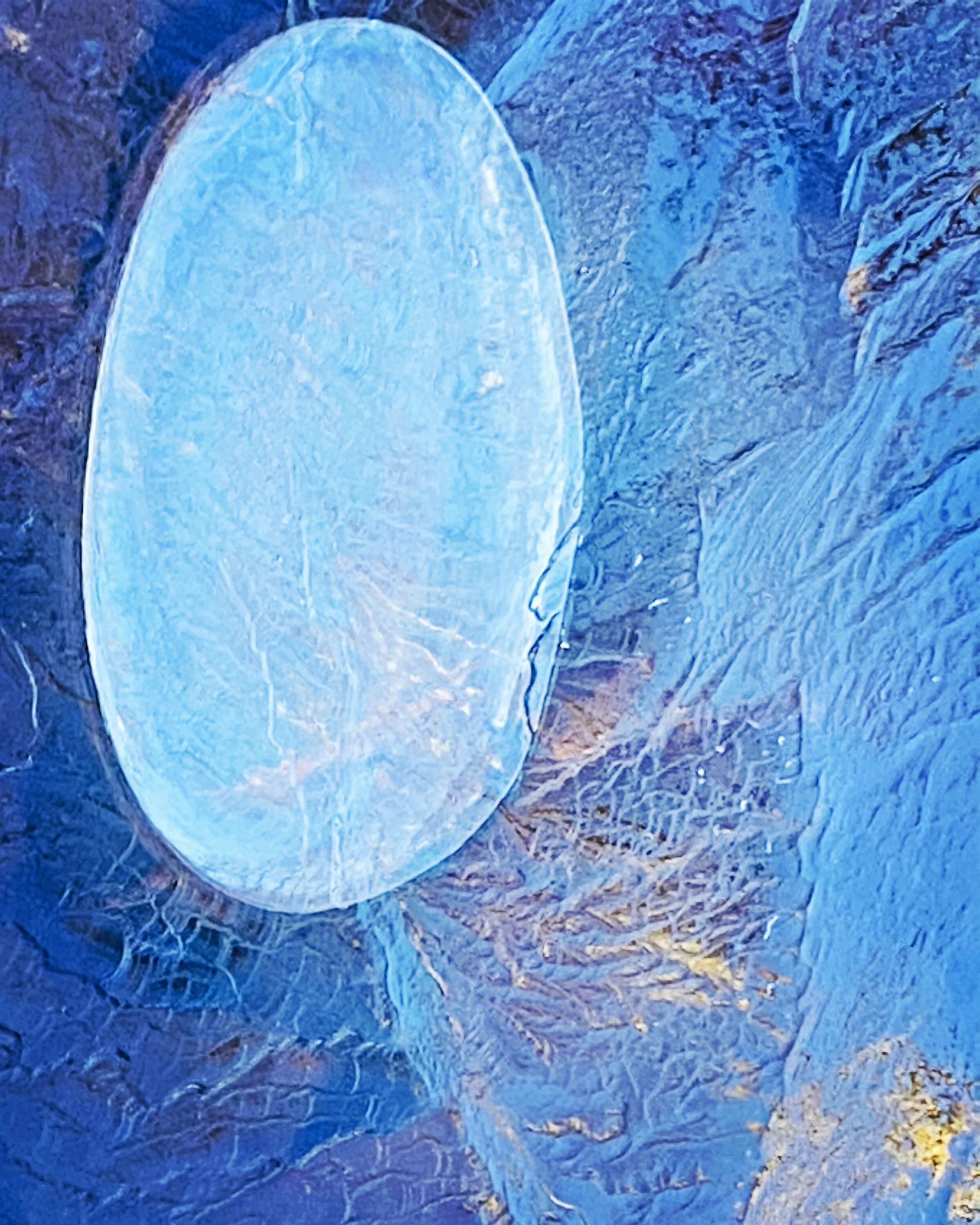 Morning is frozen. The field is crunch, crunch. My cheeks are wisped pink. The river is windless, gentle, giving up its edges to the freeze. The brook, the wetlands are busy with pictures. It’s Monday. I spend time looking at ice images. A match is struck. A blue egg floats in a universe. I manage to keep my feet dry. I am listening to the New York Times Sunday Read, quoted and linked above, about forests. Everything in the brook is the brook. Everything in the river is the river. Everything in the wetlands is the wetlands. Every season. A Monday in December. I go into the letters of my mother and make a poem. I wrap birthday presents for my son. Frank and I drive the two miles to drop them and the sun is setting in purples. We come home and Facetime him, watch him open his gifts, which fit perfectly. First, this son was a fertilized egg, silver blued and gold.