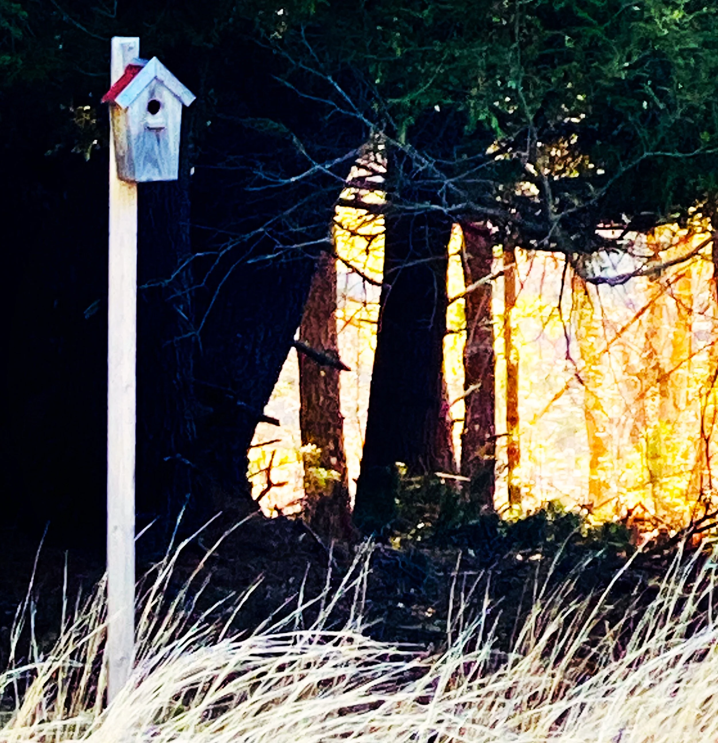My wake-up time, it seems, is back to naturally early and this allows me to be out earlier into these jumbled and late springing woods. The wetlands are high and spread across trails where they can. The puddled overflow glorifies trees and a blue sky. Blossoms begin and shine in sunlight. Woodpeckers and songbirds are in the silence and the woods where I am walking alone with Charlie. Walking in satisfaction, reflecting on my full week, all the creative activity, the workshops and the writing abundance, not my own so much as all the writing being generated that comes my way. Frank’s bird boxes stand solidly in the meadow. In the afternoon I go out. Just up the street to the post office, wearing my mask, wearing a glove. Someone has purchased a copy of my book, Before You Forget: The Wisdom of Writing Diaries for Your Children, for a friend of hers who is expecting a child and I want to get it delivered to this couple. Driving is strange. The post office has one woman in line ahead of me, many feet away, also, she is wearing a mask. The clerks are behind plexiglass. I am in and out. My daughter who is expecting a baby still reads her copy of my book––sometimes I think she reads it as a kind of bible of stories, a family bible of storytelling, and this pleases me very much. If I had only written this book for her alone, this would be enough.