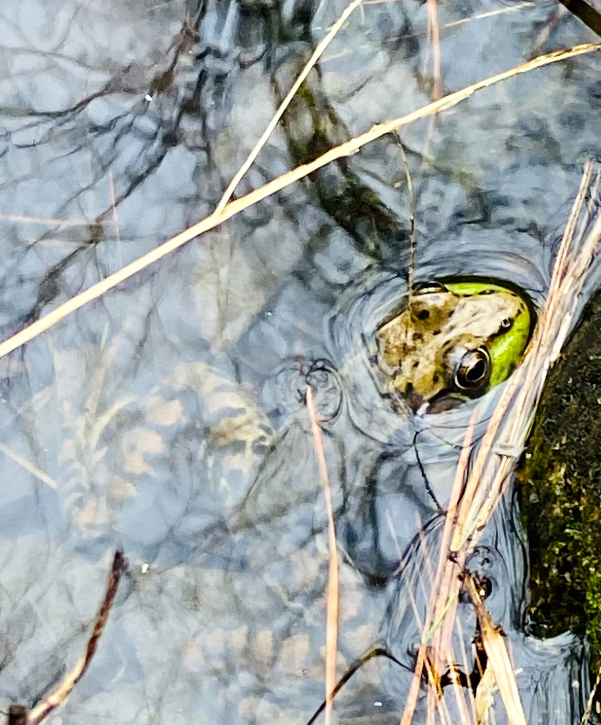 To sleep in the pour and waking in the pour. A drenching. We went out into it, resigned to soaking and mud. So many frogs! I kept seeing frogs, sitting, leaping, happy frogs in rain. This one above mostly submerged in the rising swamp water. I watched him, kneeling in the soak for some time. I was so happy to find him. All the bark was gorgeous, like art hung upon the trees and in scattered piles all over the ground. In the afternoon the rain stopped and my daughters decided to walk and I went along into spring. Truly spring. Sky blued and cheerful clouds, big fat clouds reflecting on the Charles and we had so much to talk about. They asked for stories about my cousin and set me off on a long narrative of summers on Laurel Lake. The dogs swam and we saw more frogs! Snakes too. A woodpecker and the wild oats in bloom. After we returned, and started dinner, I looked out and it was pouring rain again. Today I was delighted that About Place Journal published one of my ice images on the cover of this issue about practices of hope, and, inside, published one of my favorites - well, my favorite -found ice image of the winter: Woman Who Wears Her Moon Heart Full. So, this lovely journal about the environment is featuring my nature photos from the Charles River and my daily walks.