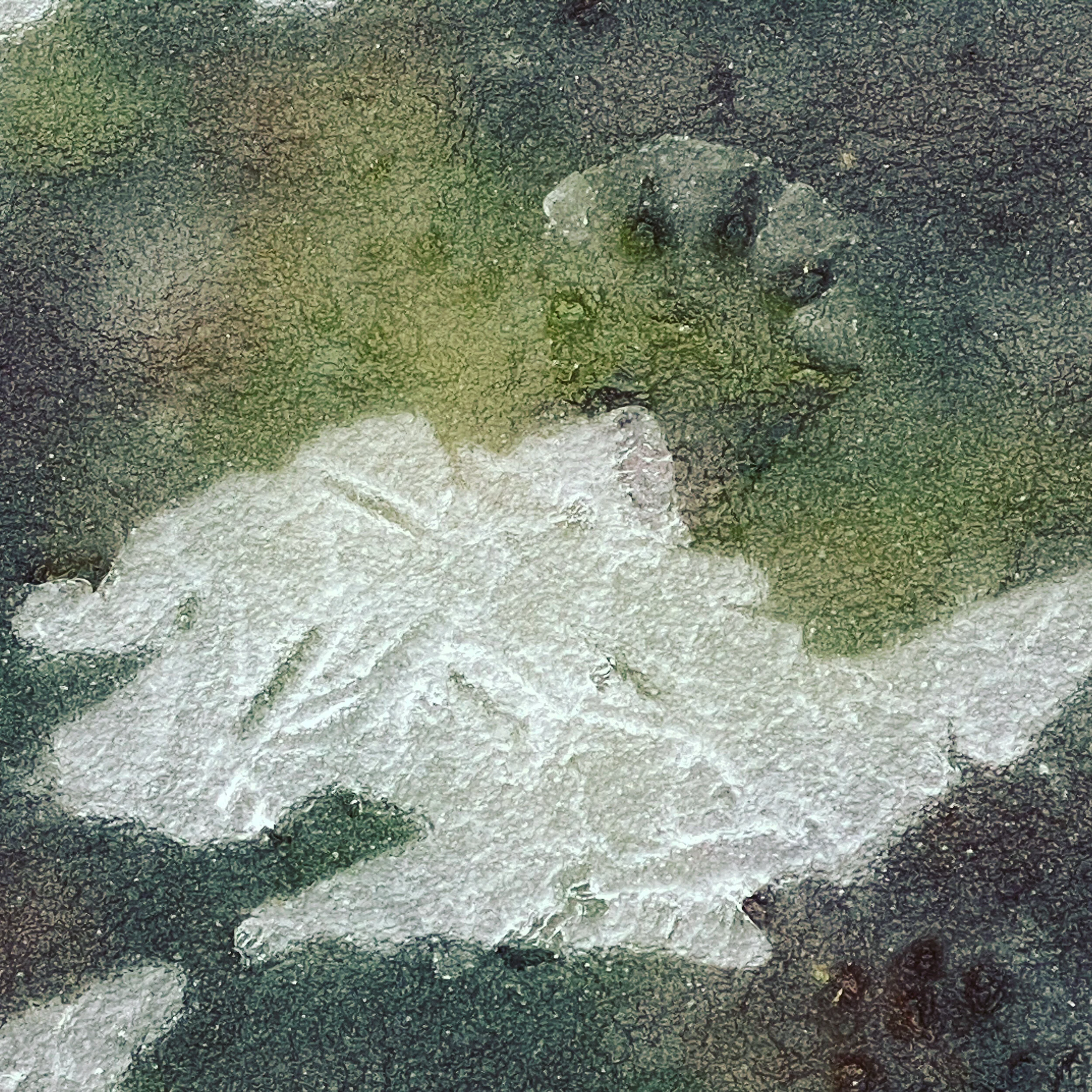 A gray and gloomish sky, and the rain had passed, and all was slushy wet and interesting on the ground: animal tracks and reflections of trees. I listened, as I walked to a Upaya Zen podcast, Natalie Goldberg, recorded on December 20, and I really enjoyed it. The holiday time is almost over. In the afternoon, the sun came out and cheered up the sky. I had a flash prose piece published, First Artists, today, about a trip to the Chauvet Cave museum in Ardeche, France, and seeing the replica of the panel of horses. And, it was time to close off the holiday with a very significant ritual: I took down the Christmas tree and wound up the strings of lights and packed them away for next year. I tried revising the recent poem and gave up. I am complaining––yes, I’m upset because I think that’s all that’s happening.