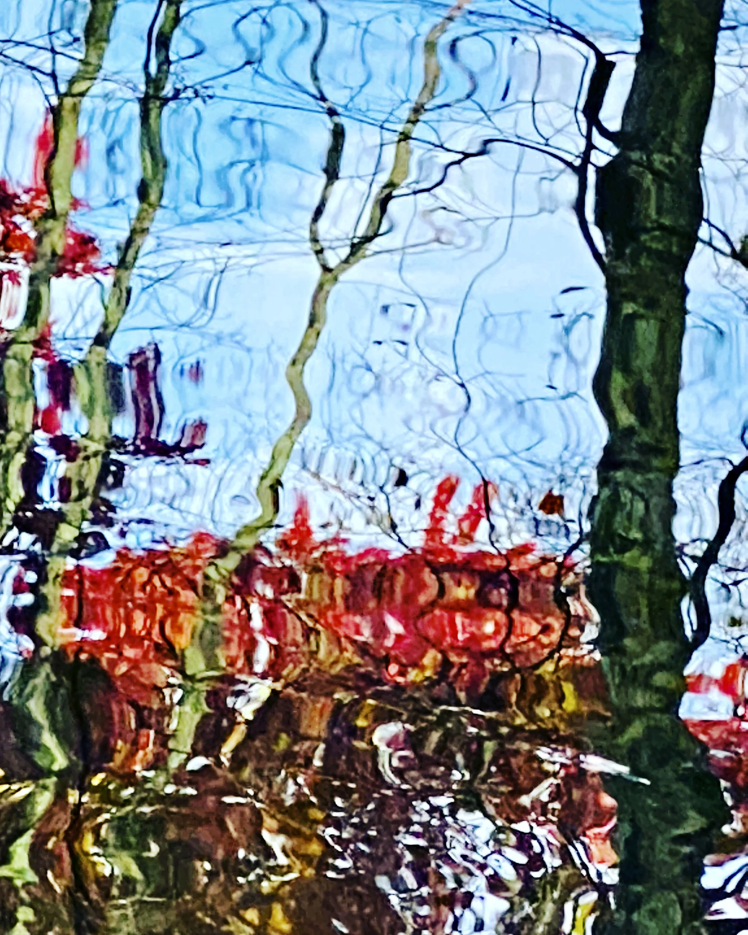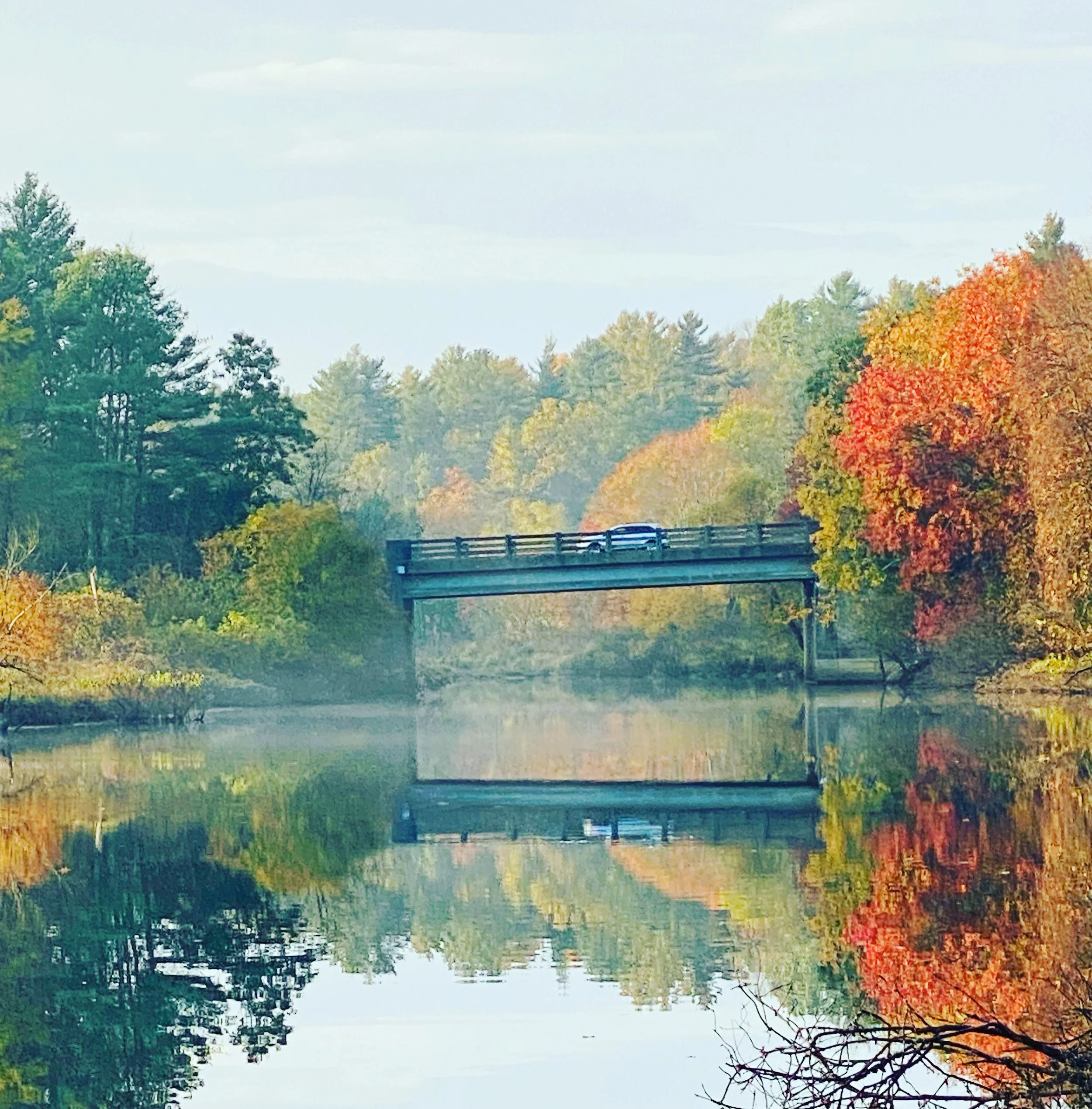 It’s a morning for Suzi’s pace. A leisurely walk, kicking along the fallen leaves. A day for pictures, for lingering to watch the reflections in the brook. A day to appreciate the colors before they pass. The river is receding. I am able to walk on Frank’s stepping stones out to the river; they are no longer submerged. It’s summery weather, sun-bright. I know I will swim later on. The monologue course is winding down, the showcase preparation continues. I meet with three writers, one-on-one, to polish monologues. I make no progress on my poem, I am momentarily stuck. In the mid-afternoon I take a break. It’s actually a bit cooler, I think, but I have planned a swim, won’t be deterred. I just decide, yes, it’s a little cooler than I thought, but I’m going. Golden pine needles have fallen all over the steps descending to the beach; I’m careful not to slip. I just go straight in. The sun is behind a cloud. I am happy to be in! Pond to myself, a rush of cold, and then, it feels right and fine. Soon enough, the sun flashes into my face when I turn for breath. The water is so still and colorful, spillled paint. I make the same swim I’ve made two other times this week, and it’s so satisfying. Then, a hot shower, warming my bones. In the late afternoon I am in the yard, at the butterfly bush with the special one to see if there’s a monarch, and no monarch, but the milkweed seeds are fluffing out of their husks, we grab handfuls and blow the seeds over the field. We make a wish for more and more monarchs in summers to come.
