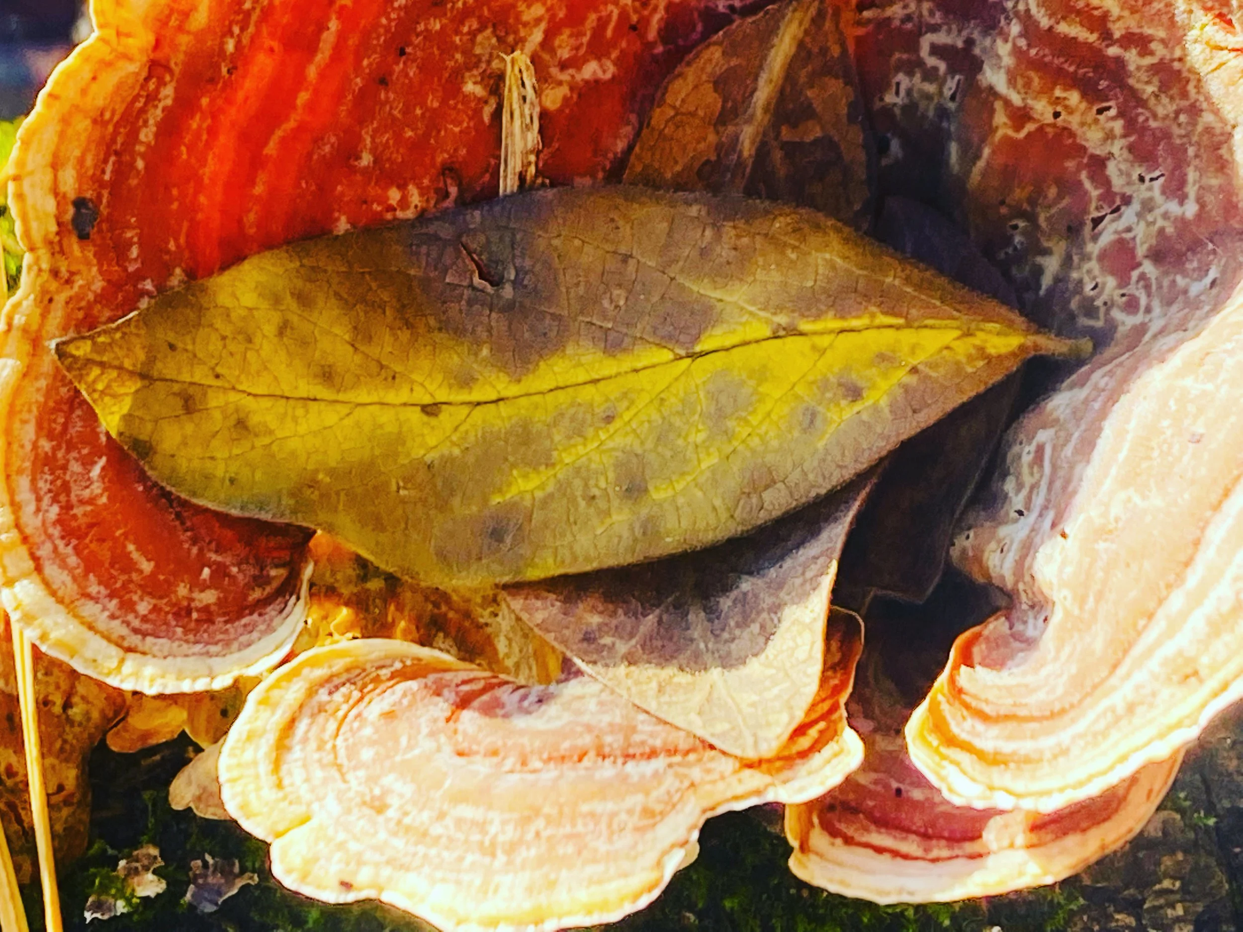 Less than an inch of snow over the grass in the morning light. Day warming. I did not find ice on my walk, but other beauties. Weather report for Boston area says maybe more snow tomorrow night. Western Mass. got quite a bit. So, winter is coming on quickly. A sweet, relaxing day spent in good part with my youngest: a mother/daughter day. We got massages and then lunch and a tiny bit of shopping, in person, and online. The chance to have deep, uninterrupted, focused conversation. Needed and desired by both of us. In the late afternoon, near dusk, Frank and I walked across the field to the river with the special one. Quite a chilly breeze at the river’s edge. A heron passing in flight. Quiet. I tossed the soft pumpkins and the browned mums into the compost heap and the flaccid corn stalks as well. Clearing for greens and berries. Put the porch cushions, in their newly washed covers, to hibernate in the basement. Cleared clutter out of the dining room. Ready to set up the Christmas train. Felt very satisfied with this progress. Tonight, mediated, ten minutes, my fourth day. Deep quiet, and remembering my time outdoors.