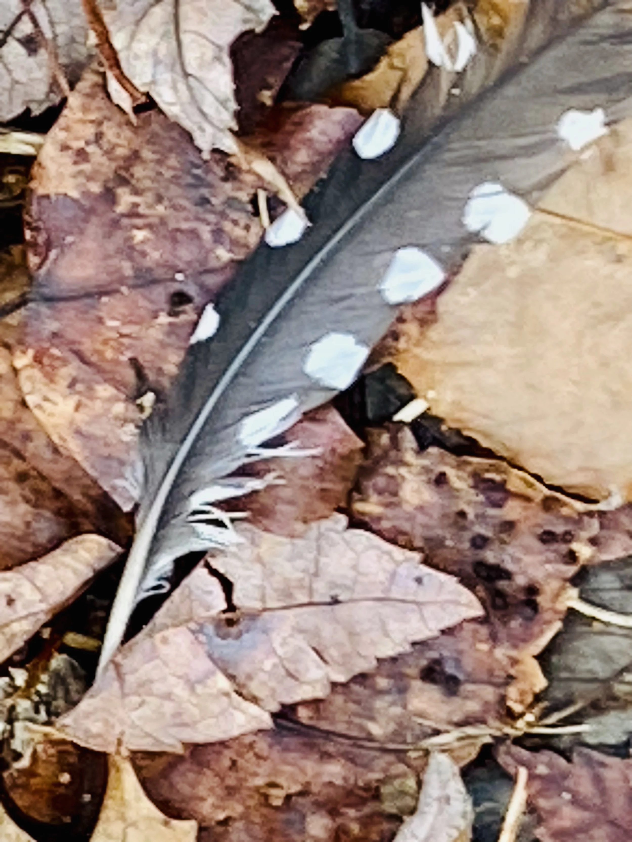 Oh, it is a night of broken sleep and an early rising. Middle of night walk with a restless one under the Milky Way, the stroller, a blanket, the night sky blinking and watching us. Then, in the morning light, a walk in woods after my absence, to the river, a bit of ice, a polka dotted feather and more warmth than cold, un-mittened. A swim. Then, to my desk and catching up with e-mails and then to a poem for tonight: revision. Can I do it? I break open the file and begin. Get it off in time. Does it work? Settling back in. Dishes done. I take all the still fresh and un-consumed variety of vegetables in the fridge and roast them deliciously. Make a pot of sticky rice. I please the eaters of this house; and instead of rice I make mine into a roasted vegetable quesadilla and Frank eats that too before tennis. He is excited to travel tomorrow for his father’s 80th birthday to Florida. We are passing each other, it seems. CNN tells of the horrible unimaginable destruction of Kentucky and I try and take it in. I light my candle after dinner and have my sit. Then workshop, and it seems, my revision is working. This has been a very full day, first day home.