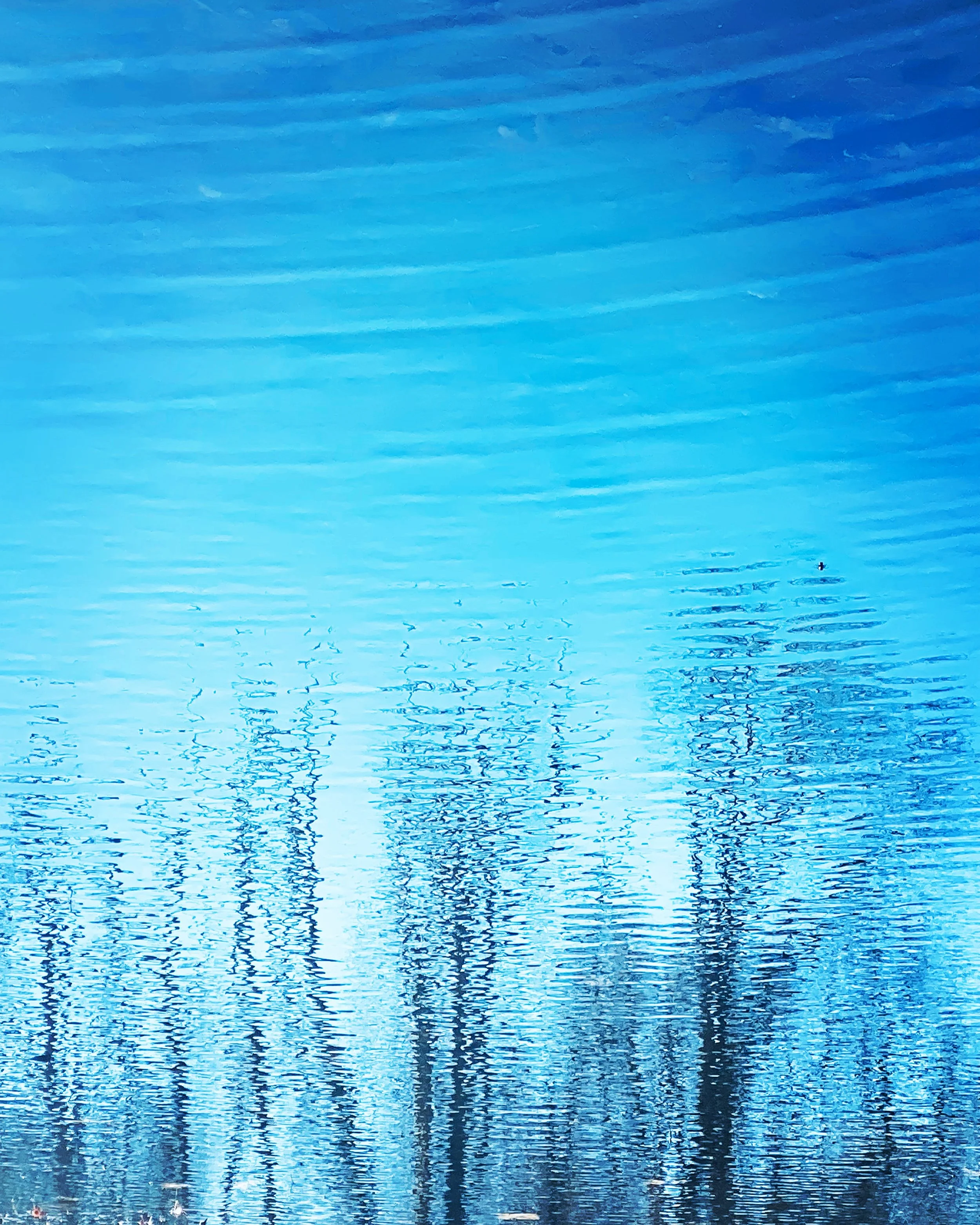 Awake before dawn after a good sleep. I hear my daughter on the phone downstairs talking loudly to someone. Turns out it’s her father. He tried to call me first, and I missed his call. He is on his way home. I take an early swim, and then walk to the river with the special one to see the morning view. I keep feeling so pleasantly surprised by how blue the sky is today, and how mild the air. The blue jays by the river are quick and fat. A woodpecker lands on a tree trunk nearby. It’s a busy morning. It’s not a work day for me, as the special one must stay home while my daughter works. It’s a play day, until Frank is home, and I head to a hair appointment. It’s wonderful to have Frank home, and now here through the holiday. I put the ornaments on the tree. We string more lights in the yard. We make the house a bit more Christmas-y together, and he is cheerful and I am too, and I see the almost full moon rising over the pine trees in a pale blue sky before dusk.
