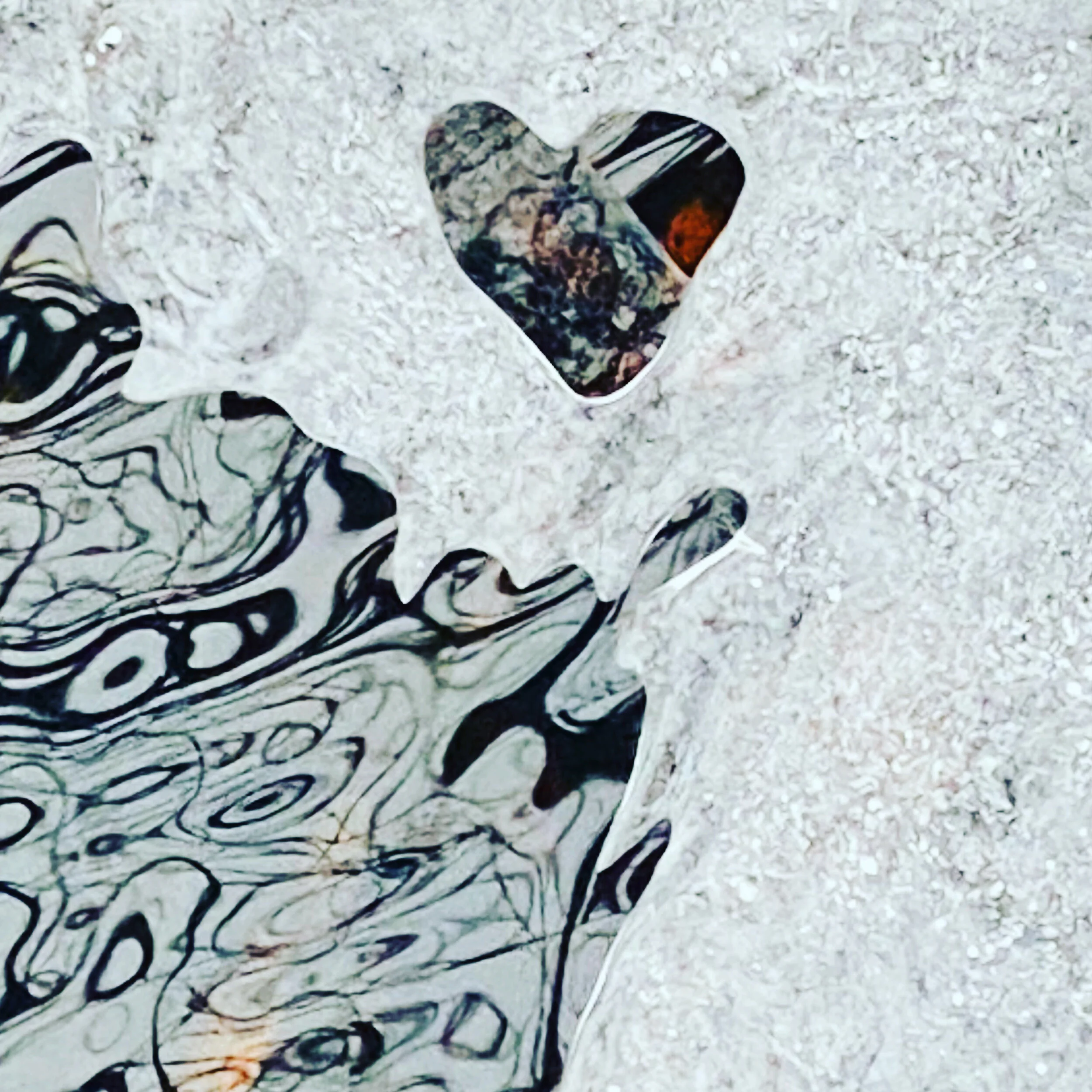 Even another day of powder for a ski. And the snow and sleet storm predicted for today never came; the sky was steel grey, all day, as if it might, but no mess came. The snow unspoiled. I skied past the ice milky and black river and went into the wetlands and stopped by the brook and then went into the Trustees and stopped at the running brook and right there in front of my eyes was a lovely Valentine in the ice. I sent the picture off to Frank and yes, he said, he is my Valentine. Then I was off for a long ramble with the dogs, taking my time, an unscheduled morning in my Sunday sanctuary. Indoors, a fire, the quiet, restful house. I talked over the movie from last night, “A Promising Woman,” with my daughter and we decided we were glad we saw it, disturbing as it is. Later, I worked on the poems from the letters, and drafted one of the three I committed to myself to get done before tomorrow. And so, I know I will get the two done tomorrow. I thought about Frank’s and my first Valentine’s Day as a couple––we were engaged, but he was living in Florida, and i was living in Mass. and that was thirty four Valentine’s days ago.