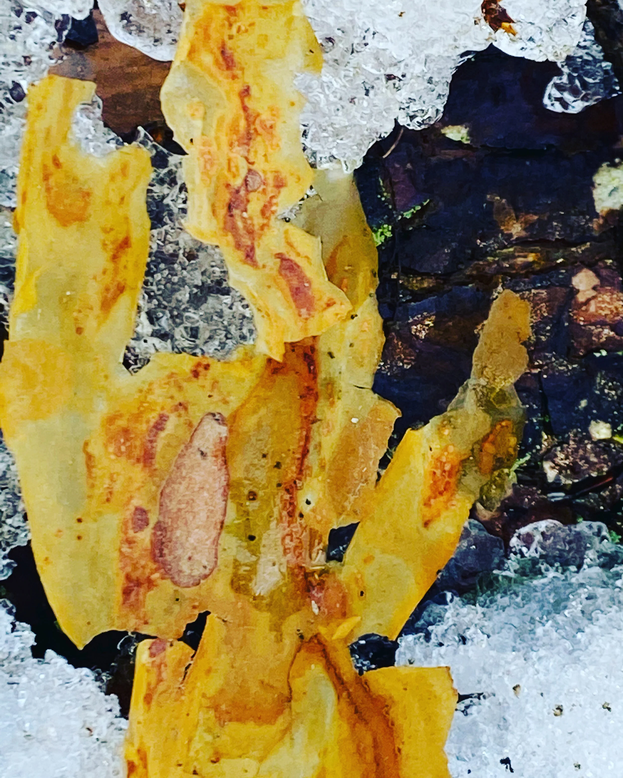 Walking under the trees, I stop and scan the snow where I check daily. I am looking at fallen scraps of bark, their shapes and colors, assorted puzzle pieces. I think, well, this makes me so happy. Perhaps that sounds strange. But I am happy on my knees examining it, finding beauty in these scraps. But I keep going around the wetlands and river’s edge, the ice going, going. Suzi and I tread very lightly over the wetlands, the foundation is melting. Still, the ribbon of brook running past us, also glittering this morning in the sun. I am out of sorts in my mood, and trying to get into my sorts. Whatever that means. Even far from the geese I can hear them talking. And I find this soothing and interesting. A relief. I am eavesdropping. I get sorted well enough, and start the day. My youngest is still here. There’s hectic energy, we’re renovating a room, and there’s bustle and distraction. In the late afternoon I come out of my office and look into the yard by the garden fence, under some trees, there are three tall figures, my three children have been on a walk together with the dogs. I stand and watch them talking, in their masks, socially distanced. It’s a satisfying to see them wanting to be together. I don’t go out; I want to just observe them from a distance. Tonight I have my Aim for Astonishing monthly workshop. So rich, so deep, so engaging, so satisfying, the lovely mix of writers. Frank has gotten his vaccine and played tennis and come home a bit tired. Asks for Advil, which he never does. He is sore. I’m glad he has had it and so is he, and may more and more us be vaccinated very soon.
