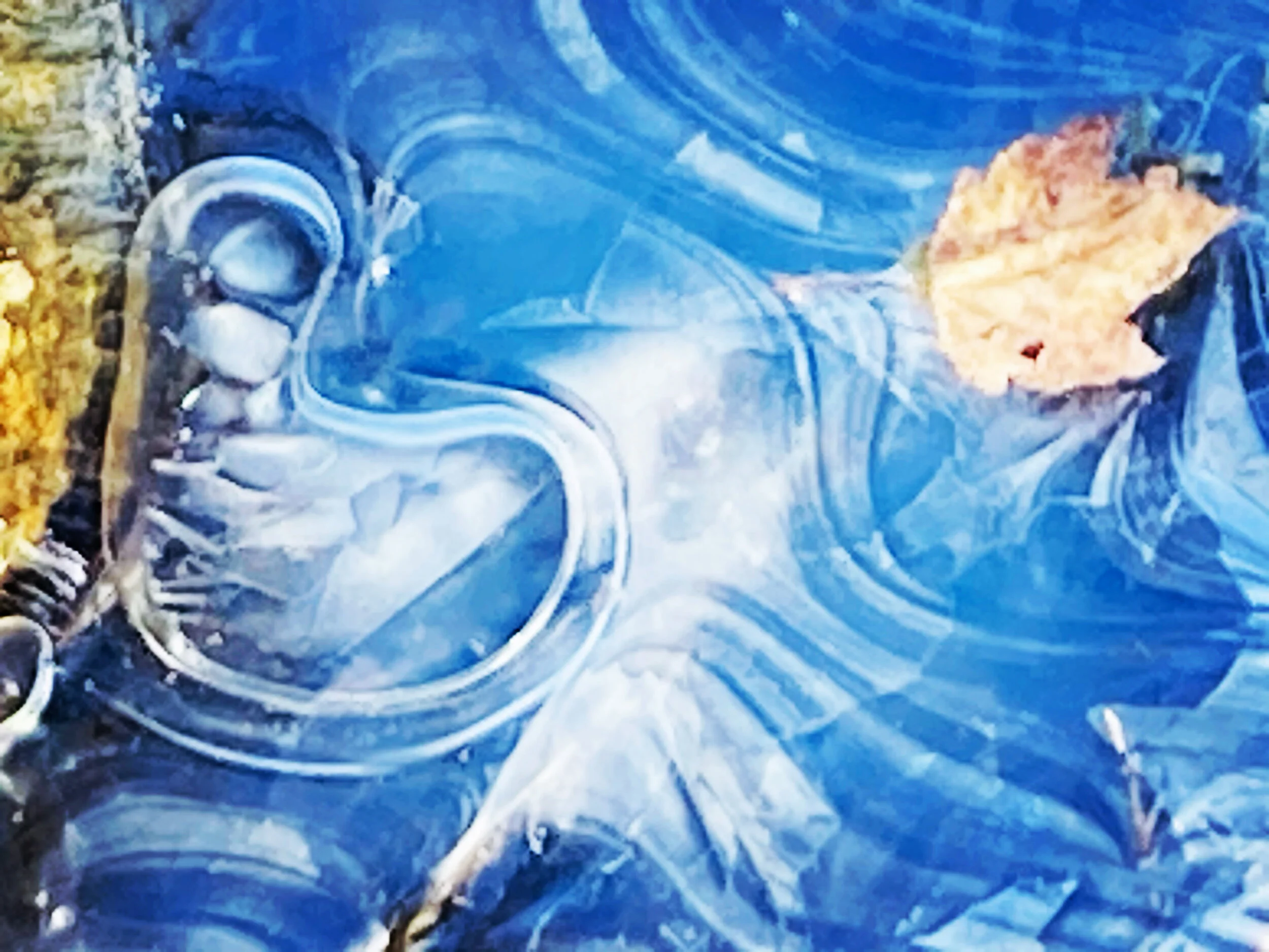 The cold was a shock! What a surprise return to freeze! The ice was back on the river’s edge and in the wetlands. What whiplash of weather, of course, it’s March. And moody, and me too. Happily, I found a photo in the brook, and then I went in to warm up, and going up the yard to the house, I felt how much finding the photo of the person meditating peacefully in the brook ice was settling my spirit and helping me connect with gratitude. I thought, the photo is the prayer. That finding a photo each day in nature, it’s a way of asking for what I need: a change of heart, a recognition of what’s important, a call to the here and now, this moment of being alive. I don’t know if others see what I see in my ice images. So, I will say, I see a figure, on the left, a person in mindful meditation, floating in the blue of the brook where the leaves go to die and be reborn with a new life. Later in the day, I have an app on my Iphone and it shows me, randomly, photos from my photo stream over the years. Tonight the app gave me the birds, the gulls I caught in flight in the blue of the sky over the Gulf of Mexico a year ago, in Longboat Key, and these gulls were so gorgeous in this photo I wanted to place it here tonight as a bookend to a blue day, blue in a good way: prayer answered.