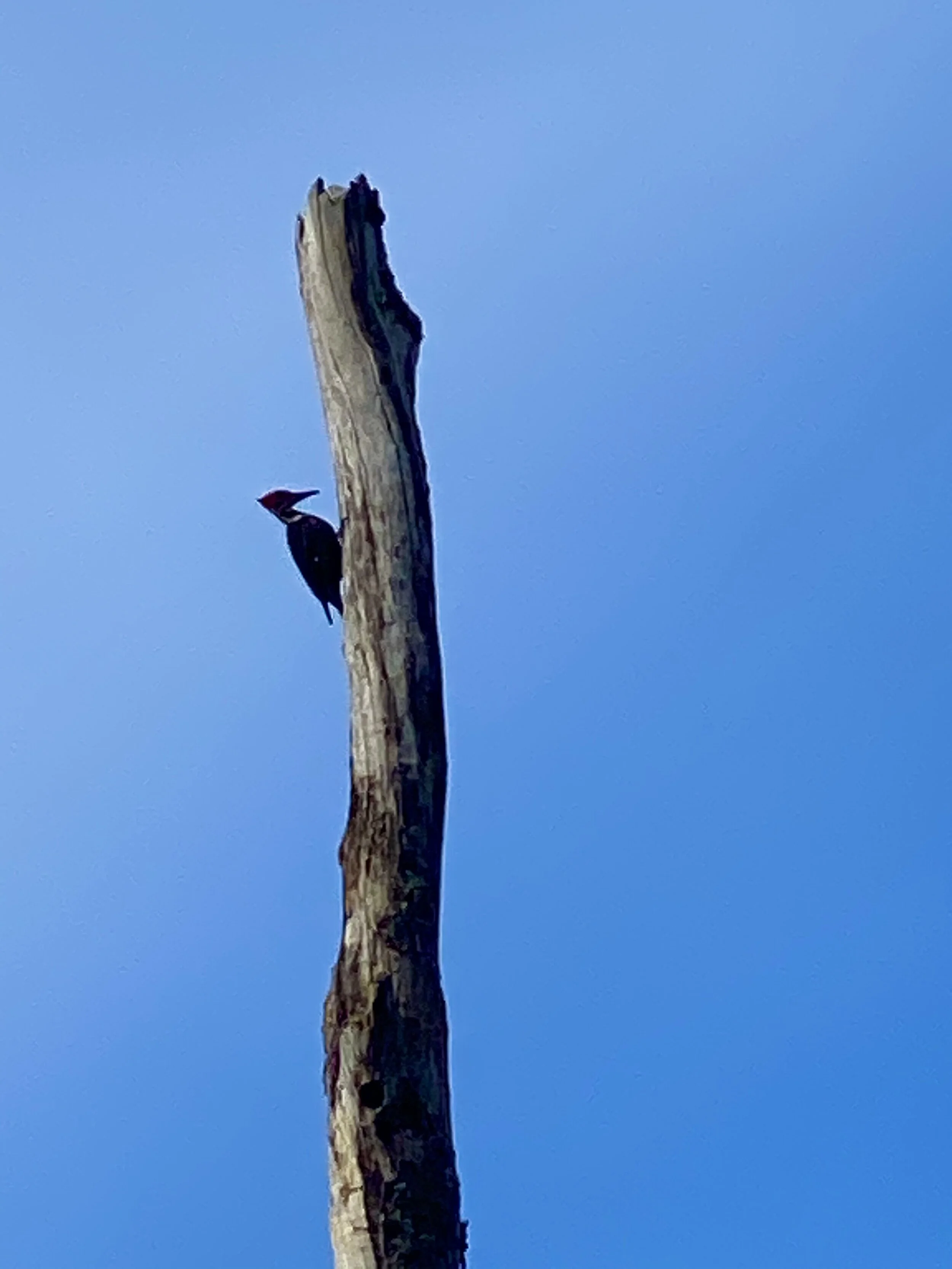 Awake early, out early, blue sky after sunrise, early and to the river and there was a bit of ice, it was cold. Cold, and I wondered if I was dressed warmly enough, and I wasn’t, but I kept going, a long ramble, I rambled past the wetlands and past the brook, and into the Trustees and walked the trail, passing the swamp, what a racket of knocking. I looked up. The pileated woodpecker perched on a dead tree under the sky, over the swamp. I watched him for a while, and I listened to his noise and business. I kept going, walked through the open field and around the wooded trails and back home and felt cold but satisfied with the sighting. I had a very good writing and revising day. After my client hour, I stayed in the quiet of my office and used a few hours. It was hard to get going. I didn’t feel like revising. Then I just decided: use this time. So, I opened the poem from yesterday and revised until satisfied. Then, made another choice. I have two poems about haircuts, and I revised the most recent. Then, someone in workshop suggested I would need three. So, reluctantly, feeling like I didn’t know where to start, I started the third. And it went somewhere. And I finished a draft. And then I was tired, but I saw another client, and felt so grateful to have written today; not wasting the time, not getting stuck. My youngest came home, we had lovely conversation in the evening. Frank talked about my father, my father mentoring him in business over the years, and I was quiet, listening, missing him, missing him so much. Wanting him there, in the living room with us. For ten minutes, even. For, even just the amount of minutes I stood admiring the red headed woodpecker. I thought of the afternoon, my father’s garden, after he had met Frank, my friend, for the very first time, to talk about his career. And my father guessed that I would marry Frank; that day in the garden, he knew it before I did.