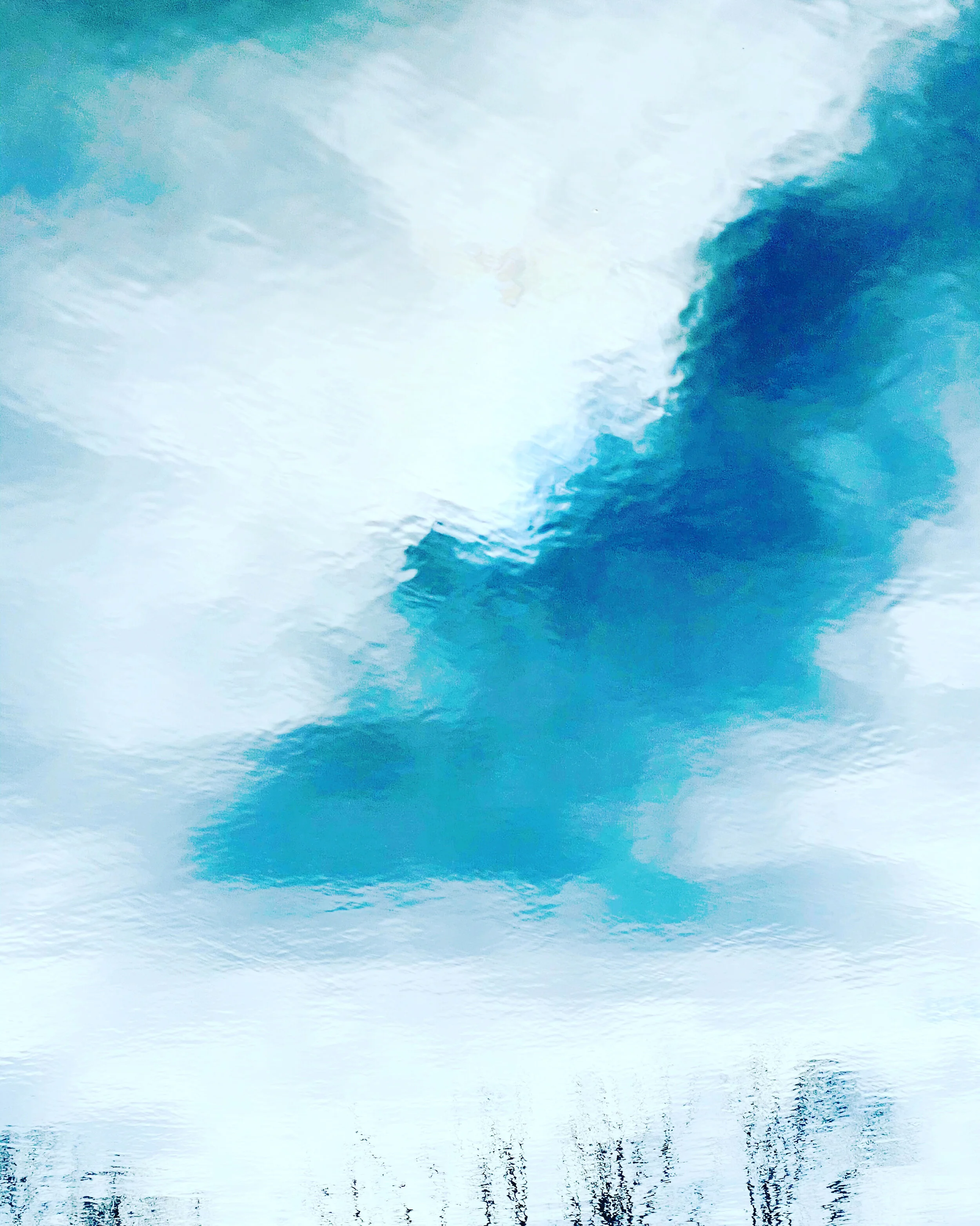 Today, the clouds roll on the river, in and out of blue. I stop at the next landing, and see the beaver has visited recently. There is fresh cut wood leaning from the water onto the land. I have a good long walk through the woods, looking for signs of spring. Still, only the skunk cabbage. I’m pleased to see, when I get home, that Feral Poetry Journal has released the “Weather” issue today, featuring my cover images––front and back––as well as my art and text assemblage inside. In the middle of the day I attend a virtual workshop with the poet Ellen Bass. So grateful for the chance, finally, to work with her after so many years of trying to find a way to get to one of her workshops in out of the way places in person. It was an exceptional workshop on poetry, and included a live visit from the poet Linda Gregerson discussing her poem, “Prodigal.” Just superb. Then I had a great writing and listening session with my Friday afternoon client, and the writing we did together was really engaging and healing, she said. A powerful process. For both of us. I had no chance to tune into the trial for George Floyd’s murder today, but it was on my mind, and I will read up on it before bed.