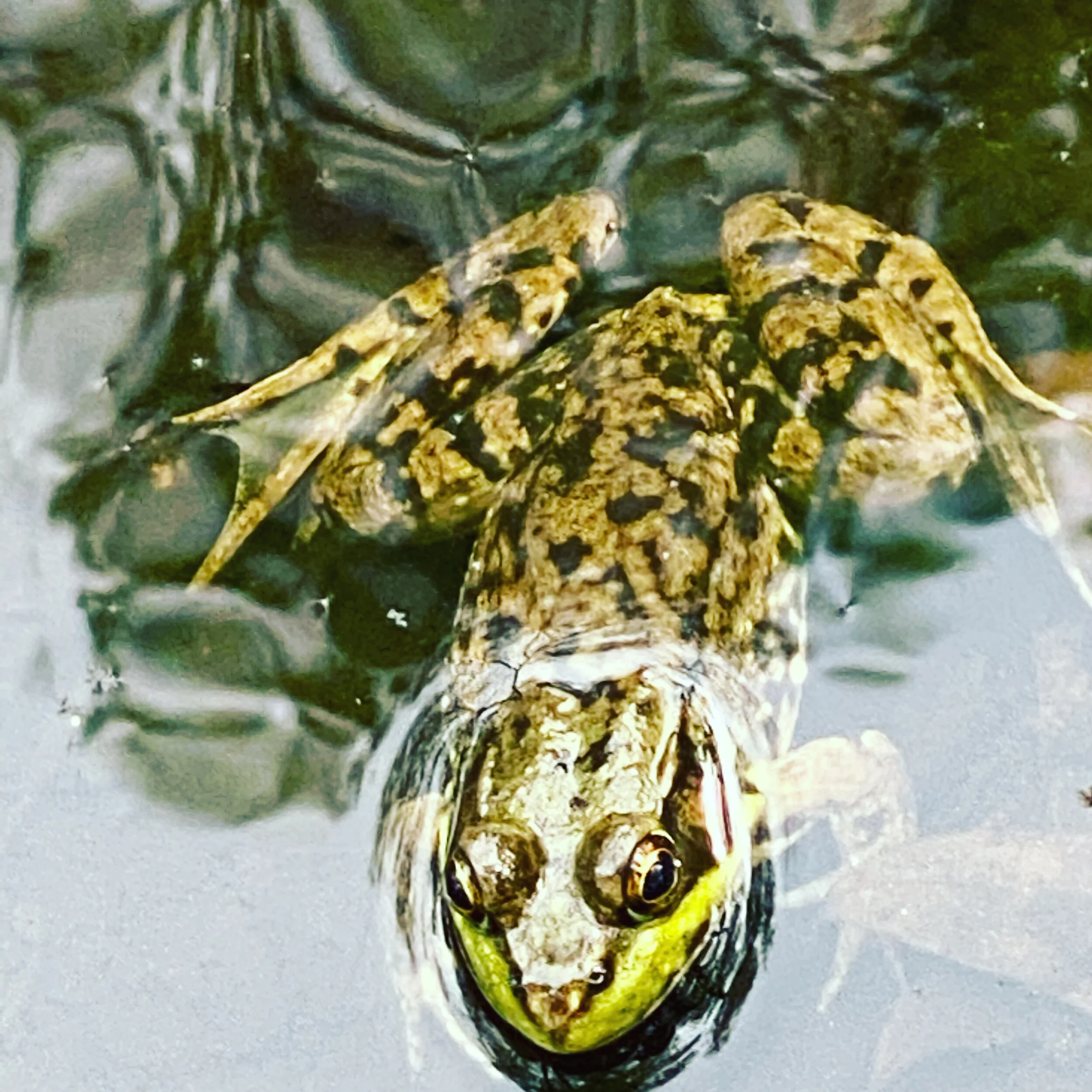 I met a frog at the brook this morning. Stopped and visited for a bit. Then, off to the fragrant woods. All the new May wildflowers: and I see my first of the year wild geraniums! I stood for a few minutes in the wetlands by the swamp in the cattails. A common flicker came and perched on a ghost tree, and I felt so fortunate for the peace I found there, just watching, listening, being still. What energy and freshness bloomed around me. When I got home, I watered the new juniper bushes and hydrangea, and suddenly a ruby throated hummingbird hovered in the spray of the hose for a few seconds as if she was trying to take a shower. It was an astonishing moment. Indoors, I wrote and sent my weekly Aim for Astonishing Prompt. And then I felt myself drawn back outdoors. The garden needed tending: I planted the tomatoes in the boxes and some purple phlox and peonies (gift from a friend) and watered and watered. Tonight, the purple rain clouds moved in over Farm Pond at my friend’s house where we went for a visit and the rain, blissful, welcome rain to water all of May fell on the thirsty and me as well.