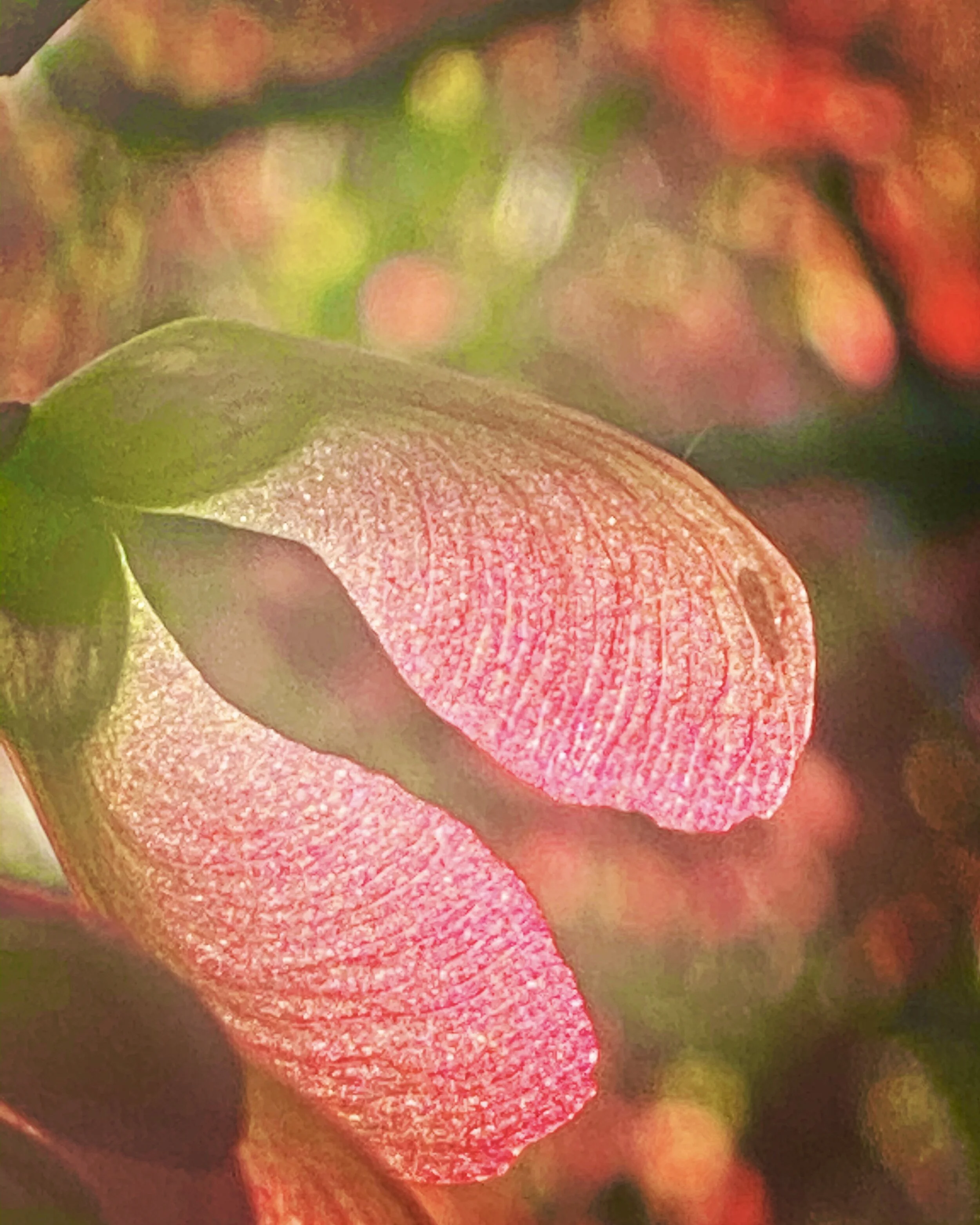 Out early into the May morning, cool and bright-skied and stimulating. Still, the maple wings. And, the brook is filled with color. And a pleasant absence. Yes, I removed the Angel two days ago: able to reach her without getting my feet wet hardly. And now I stop at the brook and see nothing artificial, just the water and the trees, the roots and rocks, the weeds and sky and sticks and leaves. I am quite satisfied. Then, I learn from my daughter that her brother has wondered what happened to the statue at the brook? I put her with her duplicate, under the deck. Charlie and I prefer it this way.