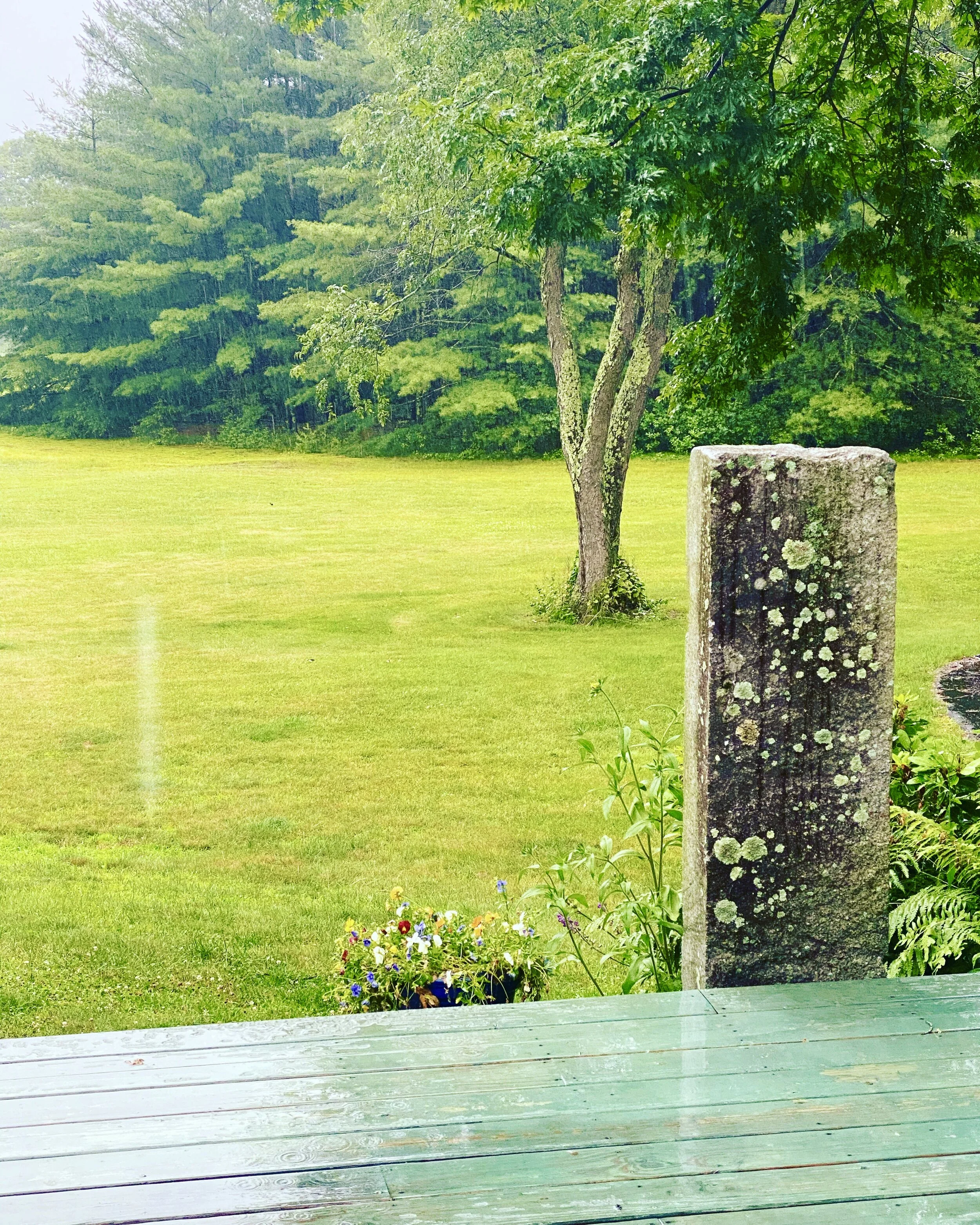 Rain in the forecast of this day, and so I only water a little. It’s so muggy, Suzi gets overheated and cannot complete the walk we take in the woods with my dear friend and her dog, and so we have to turn around. Will it really rain, I wonder? I am able to work in a swim in this busy day, around the island, under the clouds. Yes, in the afternoon, the rain and thunder come. A pouring rain that soaks the earth. I watch it from the window at my desk and wish I had time to walk in it. Thunder troubles the dogs. I have a peer poetry workshop in the afternoon and it’s all very encouraging. Then, a rushed dinner with my daughter and Frank, who arrived home, and I lead my photo-inspired writing webinar for a lovely, intimate group, and the sharing and writing are transformational. I’m so glad for this tonight; my spirit is renewed. I just always want to keep saying yes to the creative acts that bring me joy because they are meaningful to me and others. Yes. The rain came.