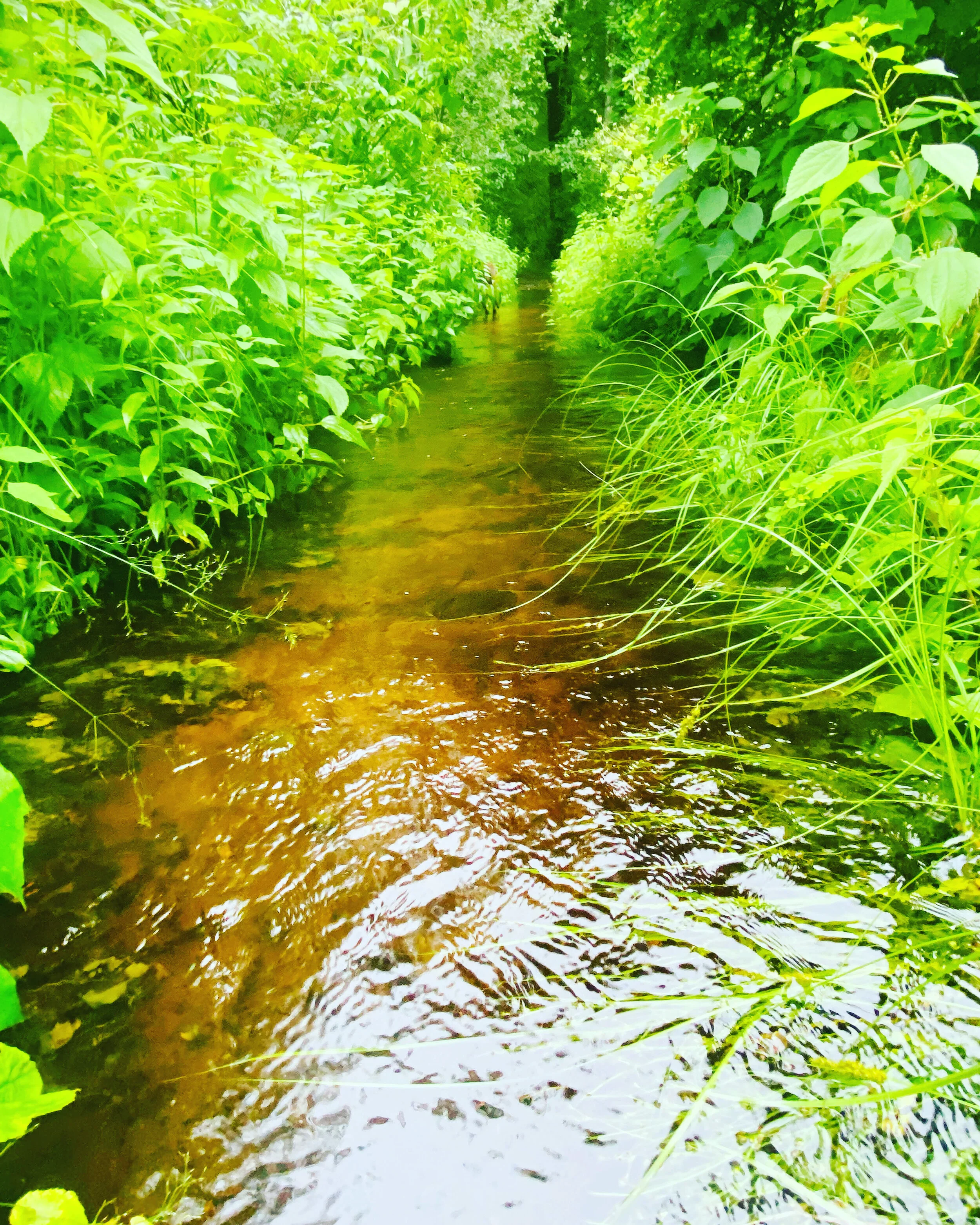 I hear Frank answer his phone, early. Neither of us has slept well; his shoulder/arm pain has kept him restless. His birthday phone call, I overhear from a half-sleep, from his father who cannot get here on his flight today after all. I fall back asleep. The next call is from Frank who has taken himself to the ER to have them X-ray his shoulder. Which turns out to be relatively okay––he has, for the past two days, gone water skiing, and then played competitive tennis right after. He is told his shoulder needs rest! It’s a happy day of errands, preparation, picking up rented tables and chairs, weeding and planting and de-cluttering. . . and a home cooked birthday dinner; all the kids here, and we eat on the deck. I’m so pooped. Even as he drops off to sleep he is asking me if I have bought enough plates and forks for tomorrow. I did walk this morning. Or, waded through the woods. Water, water everywhere. At least no more rain today. A first eggplant in the garden! Please, some sun, to make this garden grow.