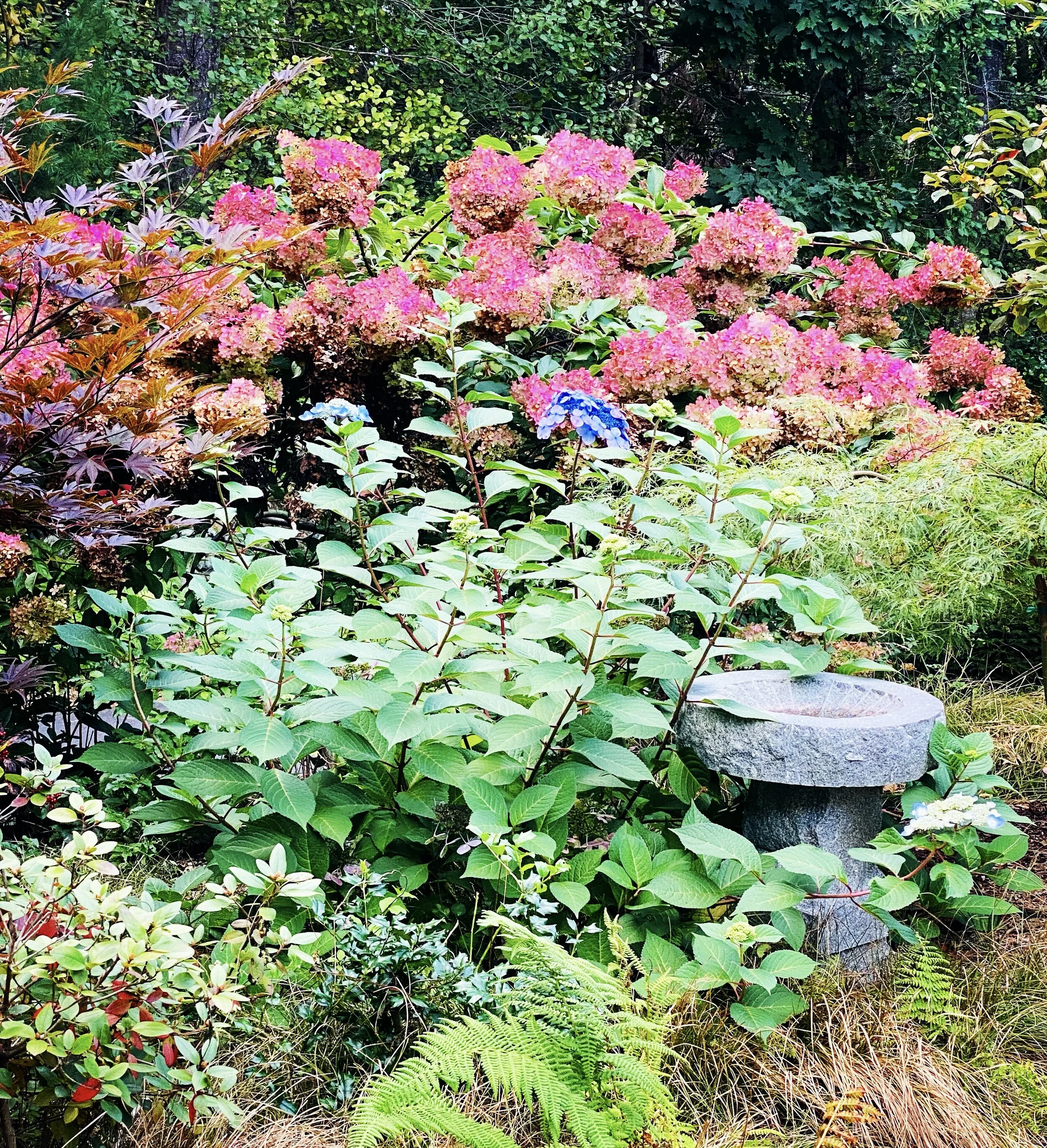 The summer days of waking and walking out into the yard without a sweater or something on my feet have passed. But the cool fresh air draws me to running. I take a three-mile run through the woods, and my phone is malfunctioning, and so I get no pictures. Charlie trails me. But he hangs in. I’m not going fast. I run through Rocky Narrows and get caught in a little bit of mud in my new running shoes. They are baptized now with messy woods. This area of the trail is swampy and under a thick canopy and there are multiple brooks, tiny ones that run through it. I run past the cattails in the marsh under the open sky and broken trees. I run over the tree roots that want to trip me up, I run so very very slowly up the hills, and notice all the berries on the dogwood, bright red and the leaves that have fallen in full color onto the trail. Then, when I am done, I am at my desk in the nicely quiet house. There is writing to read in my monologue course. Tonight I went looking for a new audible book. I have downloaded a memoir about the author Louise Fitzhugh who wrote one of my favorite books as a girl, Harriet the Spy. In the late afternoon I walked around the yard and our trails with the special one and we smelled the herbs. The hydrangea by the birdbath in one of the front gardens is wine colored and, in front, the blue one is just bursting into bloom. Tonight, bright in the sky, the Harvest Moon, waning. And Frank is home.