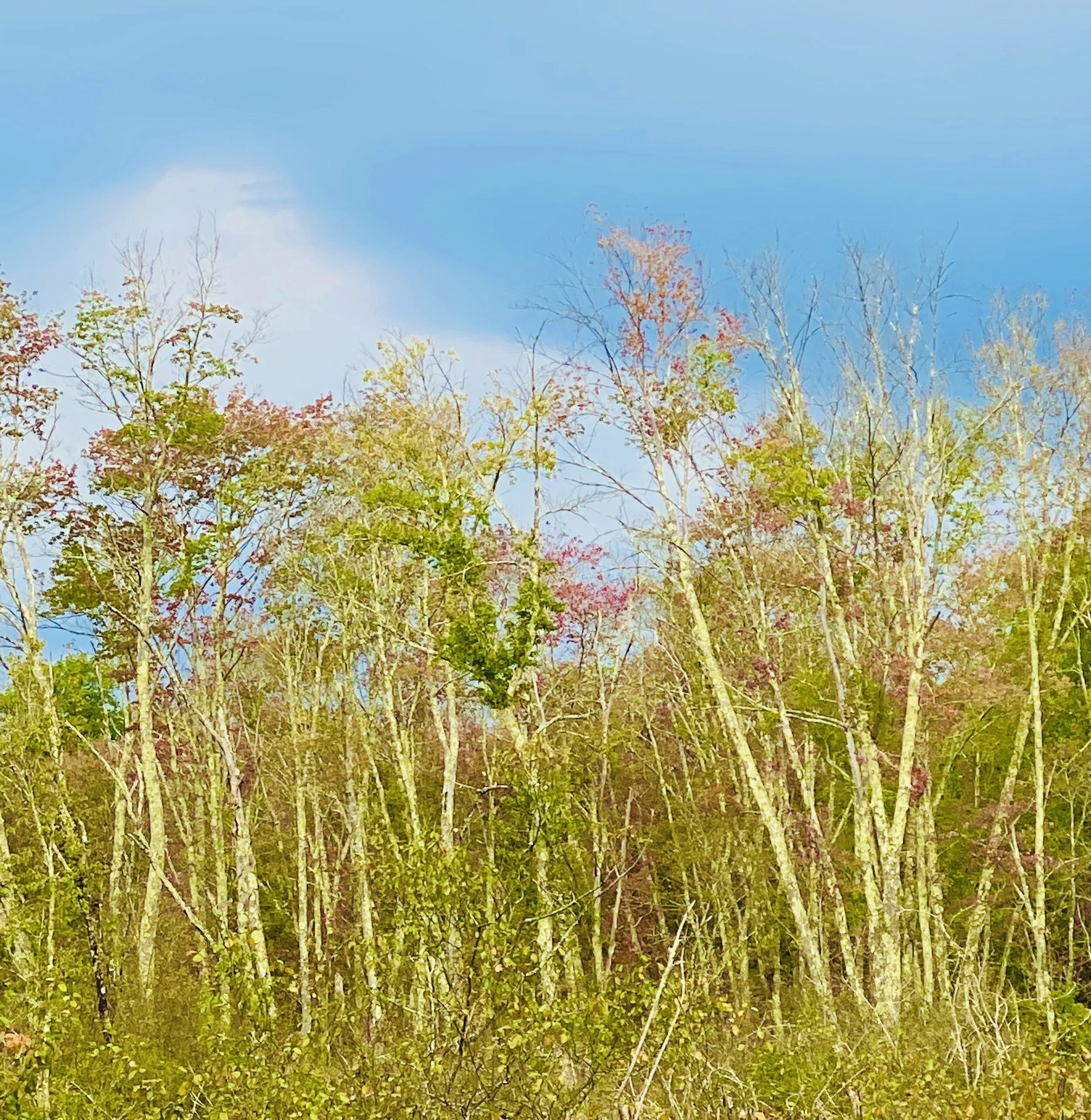 It’s a morning for a walk with my dear friend, and I take a swim before that. It’s a moist morning, there is no rain yet, but the blue of the sky foretells it. How good it is to listen and listen and let my friend fill me in on all that she is processing in her life. I take one picture, only, as I am feeling the woods, but not seeing the woods, I am involved with my friend. We pass the swamp and I notice the sky above the trees. Then, the rumble of thunder. Is it possible we will be caught in a dramatic storm? Poor Charlie. We keep walking and talking, not minding the growing thunder. And make it back home before the cloudburst and drenching that lasts most of the day. Still, it’s pleasantly warm. The house is quiet and I work at my desk. A rare moment of absolute quiet after the storm passes and I relax into it and focus into it and I have no distractions. I like certain distractions, of course. Another friend, far away, calls and I take that call. But, I get so much done! Caught up on my monologue course comments on writing and prepped for my Charles River Writers tomorrow. Still, I keep the windows open to the rain. My violet is in bloom in front of the open window. And, tonight, windows still open the lull of the rain. So many things out there still in bloom, still wanting water, and grateful for it. I put the new Anthony Doerr novel on my Audible wish list to purchase with a credit when one comes this month. And today heard a rave review by Maureen Corrigan on NPR. So, Cloud Cukoo Land, I will read you very soon.