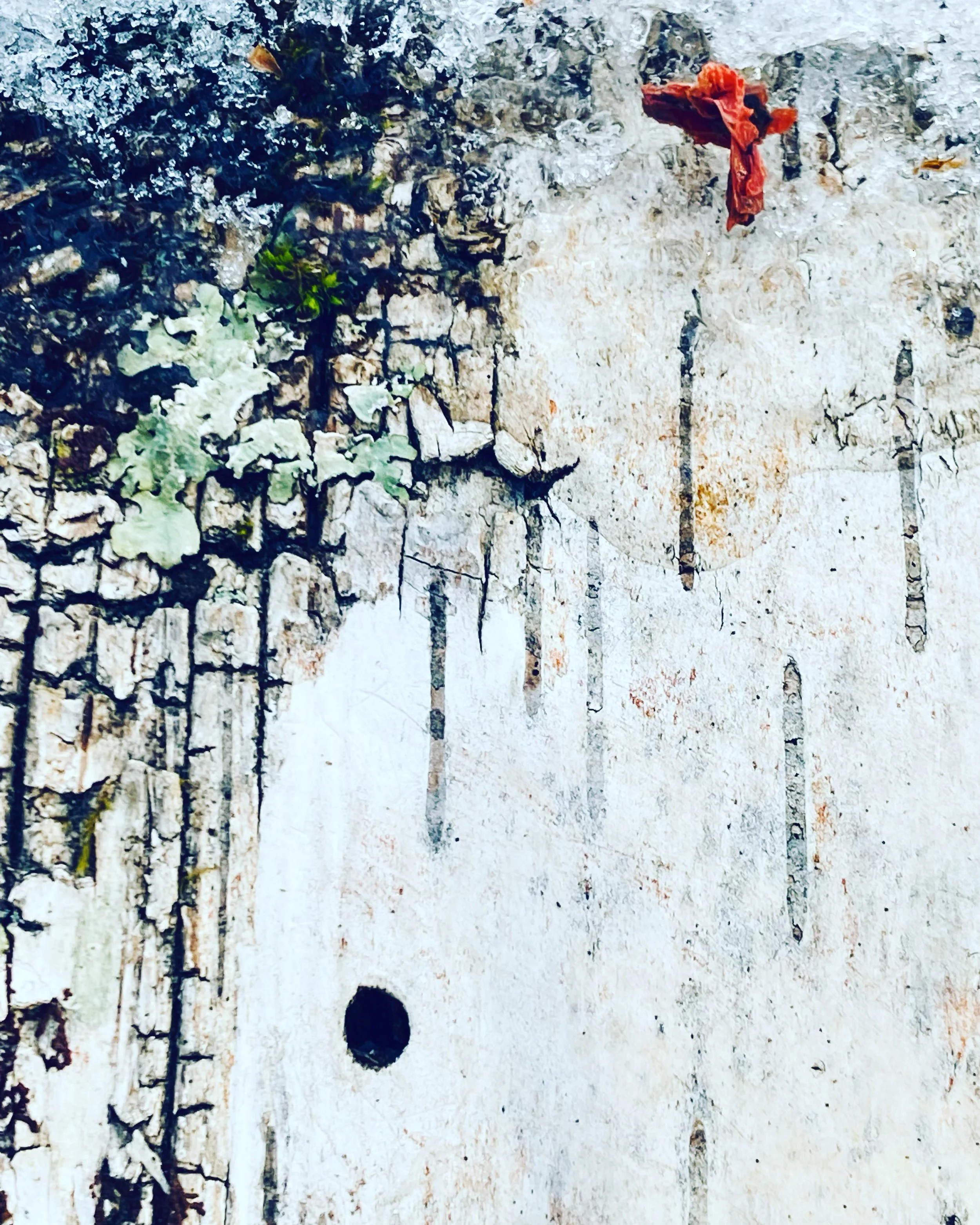 Some birch bark, I imagine a door into a tree’s interior. As a child, a lovely fantasy, to live alone inside my very own private tree. The sky this morning lit by a very weak January sun. Tips of the trees blue-gray-black, reaching. Frank has said they are coming to demolish the bedroom today, but I haven’t had time to think about what this involves. I have to hurry back from my walk. The crew in their white paper coveralls are, indeed, bagging up wreckage from the master bedroom suite. Frank hands me empty boxes and hurries me through the sort: what will we keep? What will we give away or throw away. I’m a bit irritable, and so is he. There’s a sudden pressure; really it’s simply an unpleasant job. The crew is patient and nice. Such a mess. I go through all the boxes and drawers and my desk and another closet, and under my desk, and all the pictures on the walls. . . Frank helps me a lot, to make fast, efficient, un-tortured decisions. Only a few of my countless books not in a case are damaged by water. Jane Hirshfield's Ten Windows: How Great Poems Transform the World, and Ariel, Sylvia Plath . . . I keep them. I let others go as give-aways. Many, boxed, kept. I have to move an appointment to a later slot. I forgot I had a massage scheduled, miss that. This is what needs to be attended to. Reorganization, demolition: reconstruction. We get through it, and Frank pushing me step by step really helps. My afternoon is a re-set; back on track. After my client, I have a session with Nina, my trainer/therapist/psychodramatist and this is just right, just right. Blessings to the guiding lights who see us and support our deepest work.
