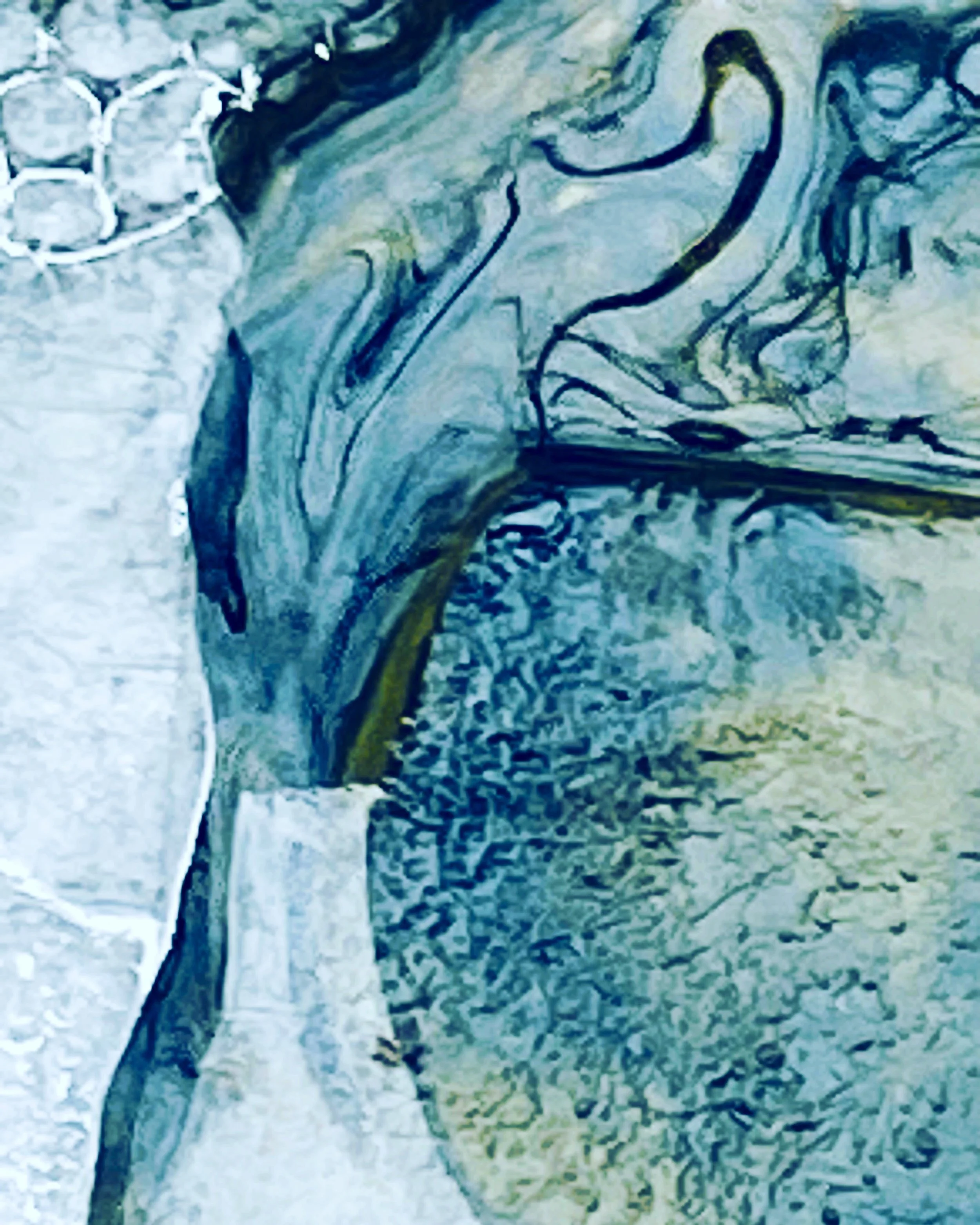 A morning like this, heavy-skied with clouds and mute-gray, this makes the river black. Black river skimmed and coated with ice, thin and thick and places where the black water ripples. There is ice, it’s hard, though, to find interesting pictures. I could say this is the ice’s fault; but I think, no, maybe it is a lack in my own imagination or ability to see. Still, I see ice flames, and I see a spout spewing energy. My youngest comes over for a short time. She has adopted a kitten. Now I am a kitten grandmother, too. Later in the day I go into Arlington and meet the new grand kitty. I am called to be more of a cat person now. For her sake, I will try. Also, I swim again at the health club. I feel great. Glad to be warm in the pool. I am trying to adapt to the presence of workmen in my house all day long; the loss of privacy. In my office I find silence and peace and the pleasure of connecting with my quiet center. What a sunset tonight: black branched trees glowing red in the sky. Tonight, I attend a Zoom lecture sponsored by the Jungian Society of Western, MA, on personal myth with Dennis Patrick Slattery, whose poem is excerpted above. It’s quite stimulating; I feel like the spout in my morning brook, that energy of awakening to ideas. Tonight, I will sleep beneath the bridge, as Slattery writes, and watch for the prize floating in the dark silent silk river just feet from where I dream.