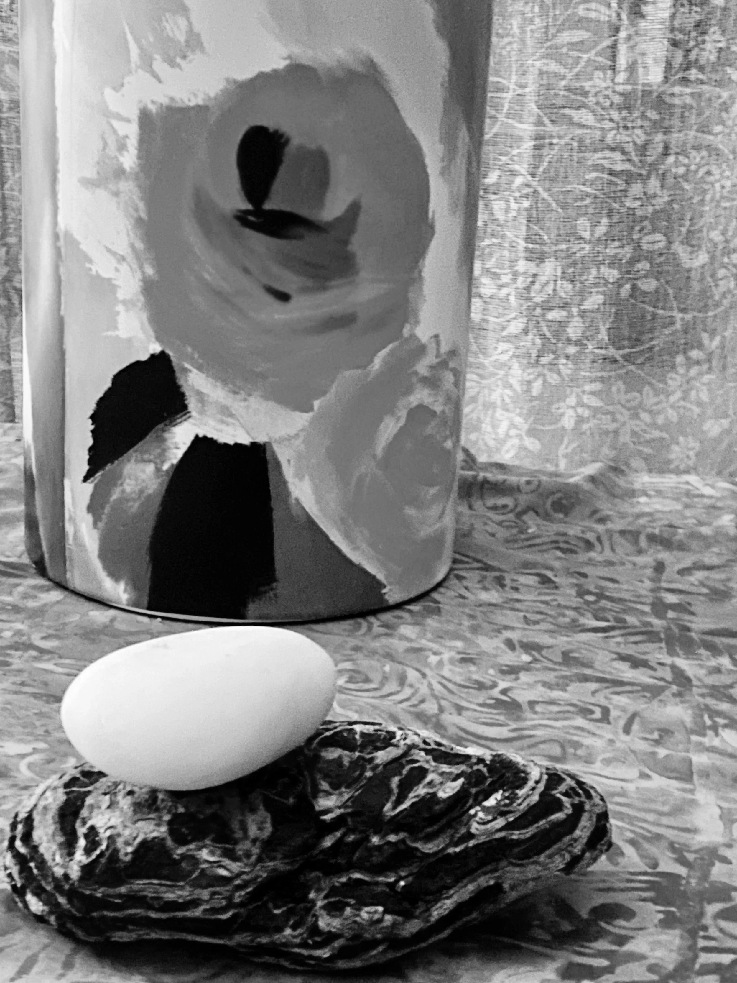 First Monday of the new year, a bustle and business in the house. I am eager for this transition; two groups starting this week. Outside, it’s cold, cold cold. My tolerance has weakened, momentarily. I get no pictures in this dry and frigid landscape. So be it. I settle for this one: a lovely piece of driftwood I brought home from Point Reyes in California, topped by a favorite white beach stone found in Chilmark on Vineyard Sound––arranged for my evening meditation. My head swims with nursery rhymes this time of night when I have the priviledge of reciting the dozens and dozens I know by heart in the dark, quiet room where a little one who loves to hear them is listening.