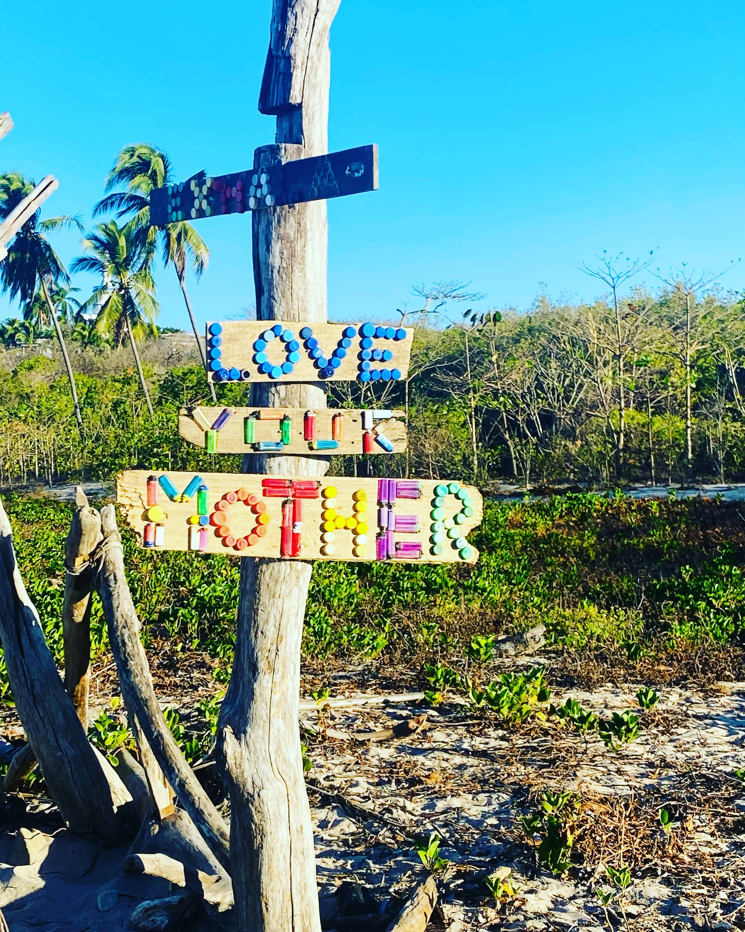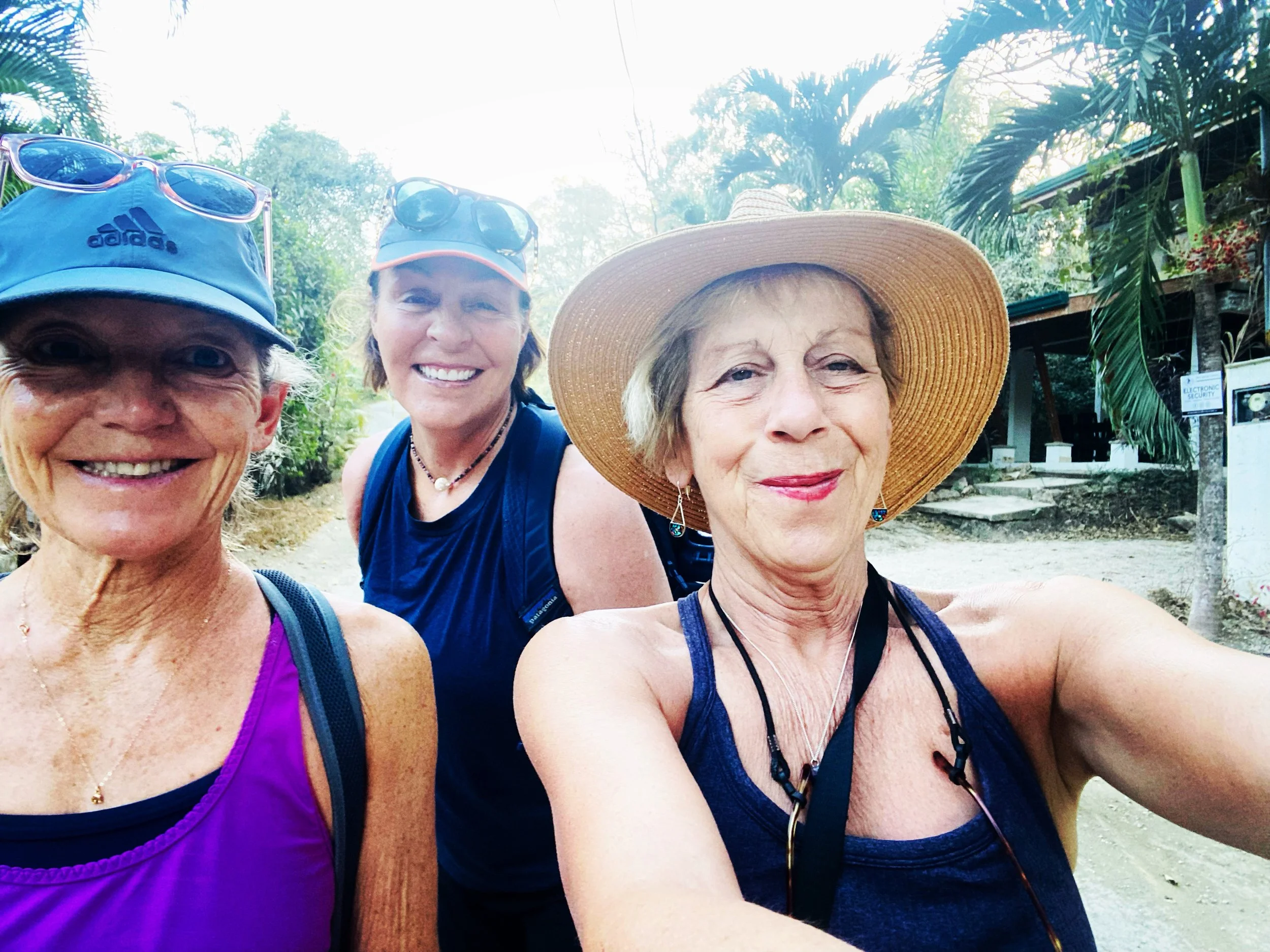 Could it have been a lovelier day, start to finish? The howler monkeys woke us well before dawn. I fell back asleep until 6. Then, our household got up to begin our various activities. For me and my friends, a hike! A new one, crossing two beaches. We set off in our usual journey to Playa Guiones, a 7 minute walk down our dusty dirt road. We headed toward a big rock outcropping we had yet to explore. Found a path around it through the trees and reached the next beach up, Playa Palada, a gorgeous beach full of rocky tide pools. Then, we explored the strange looking hotel we’ve seen topping the tree line from the shore with the hand posing in a yoga mudra a the top. Then, made our way through some dirt roads and trees up a trail that led us to the Lagarta Lodge, a restaurant and hotel, where we had breakfast on the terrace overlooking the pacific and the rivers that flow into them. Then, we hiked back, and swam in the soft surf of Playa Guiones feeling quite refreshed from our journey. I wrote and sent my Aim for Astonishing weekly prompt, and wrote about serendipity, and seeing the turquoise browed motmot in our yard on Valentine’s Day. Then, for more of a serendipity treat, while Frank and I were at the Bodhi Tree resort where we all take yoga classes, I looked out the massive windows from my mat and saw the howler monkeys close up, swinging from the trees just outside! This was my first real glimpse of them close up and they stole all my attention for a bit. We met our friends on the late afternoon beach for sunset swim. A casual dinner outdoors at the Fish Bar. I wore a long sleeve shirt, the air was very slightly, very slightly cool after a hot, hot day.