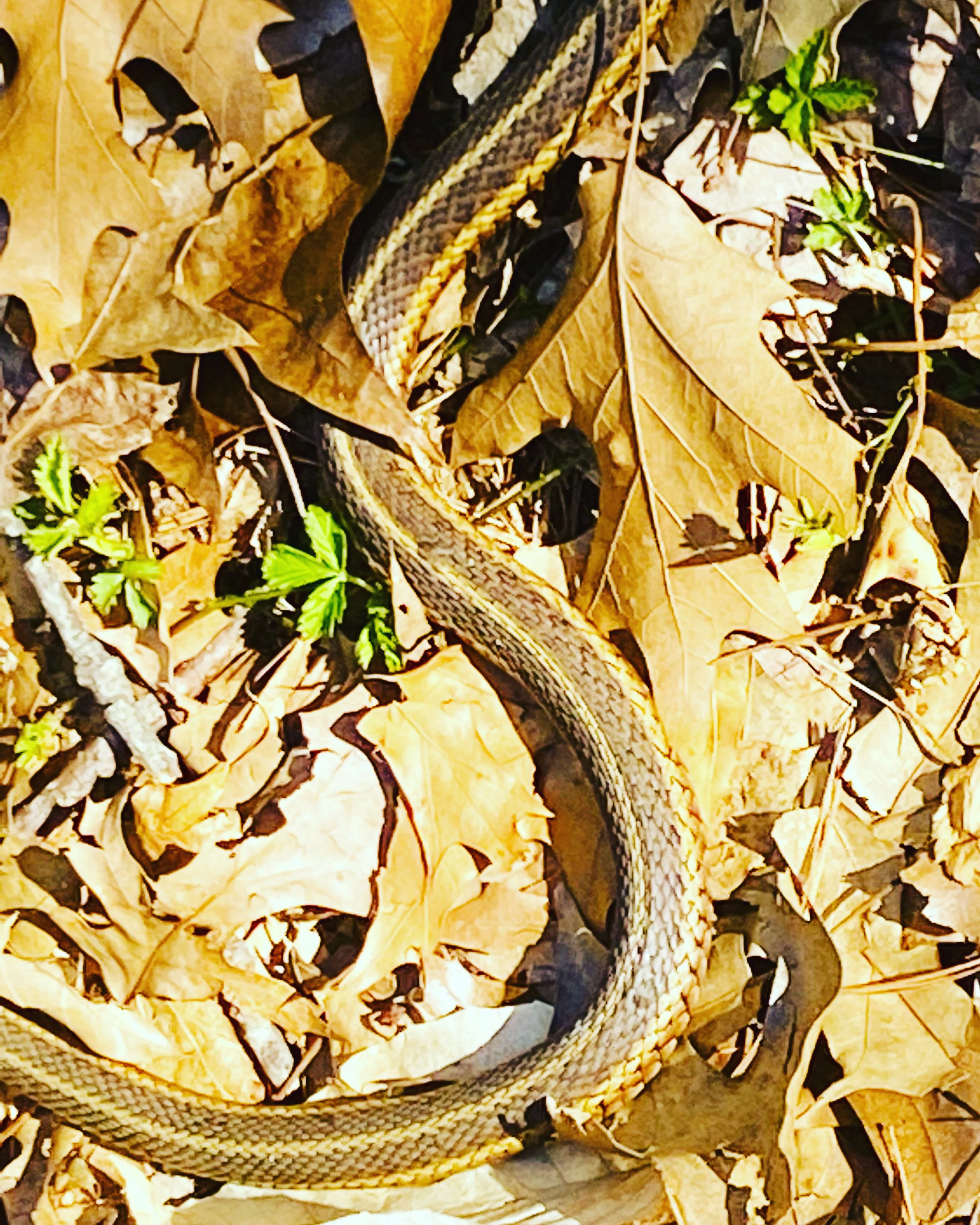 I passed them without noticing them, and did a double-take. I had just begun my walk this morning, was heading up the driveway to the river. Out of the corner of my eye, in the new shade garden I planted last early autumn, there they were in bloom. All the plants in this garden taken from my friend’s garden when she moved, a gift to me. I had no idea what early spring gems I set in the ground! I sent her a picture right away so she could see them in bloom too and know I was thinking of her. I kept walking; it was so sunny, but cool. I came across my first snake of the season, soaking up the sun. In the late afternoon I went into the yard with the Special One and saw him stop and smile and wave across the yard––at nothing. And, wave and smile again. At what? Nothing I could see. An imaginary friend? Then I saw the quick hop hop hop and the white tail of the brown bunny who lives in yard––a real friend, after all.