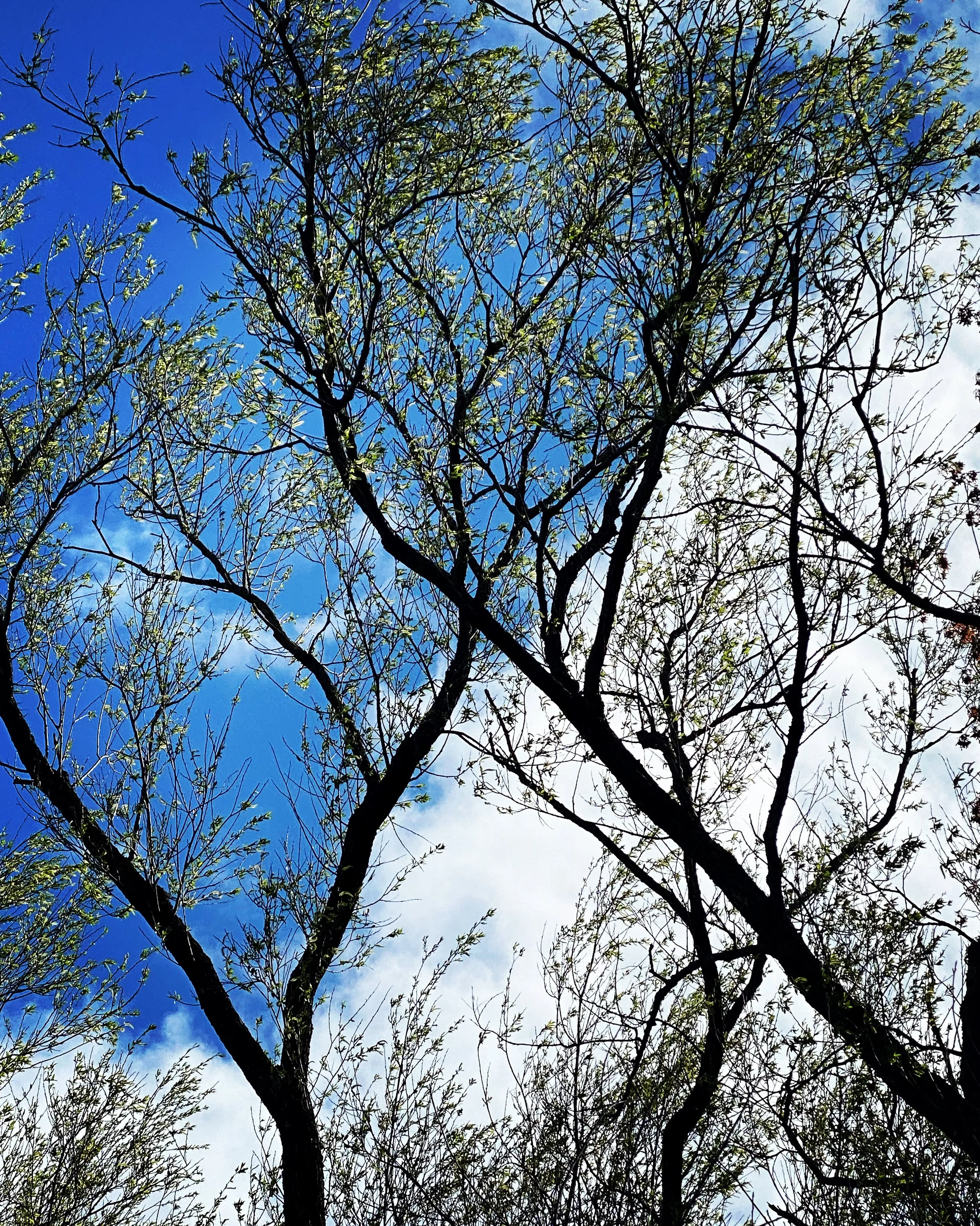 This morning my body said, after a week of declining: let’s swim. I drove to the pool with the dogs and swam a happy half an hour. Then I took the dogs out of the car to walk a trail that leads to a beautiful meadow. A cold wind blew and the sun shone. Lots in bloom, I felt so cheerful and energetic. Until I met the skunk in the middle of the trail. She/he sprayed me before I saw it coming. Just sat there with its tail up. Really? Dogs behind me. I walked a few paces in denial: nothing happened, right? A near miss? Until I really couldn’t deny it. I stank. Now what? Busy day ahead. A client call to get home to and I had set aside this day to write an article on a deadline. Well, I decided to walk home rather than return to my car so I wouldn’t pollute my car. And it was a pleasant lovely walk through two meadows, over the trestle bridge, and both dogs followed me over the river without a panic attack. Home, I left the dogs and my clothes outside and made a special batch of some potion I found on the Internet and after two batches and two showers I seemed to be my normal scent. My client canceled, quite helpfully. I worked on my article and met my deadline and let the dogs in after I figured out that they were not sprayed. And then I walked back to get my car. Frank was surprised on the phone to hear me so cheerful. But, of course I was! The dogs didn’t need baths and I no longer stunk and my article was done!