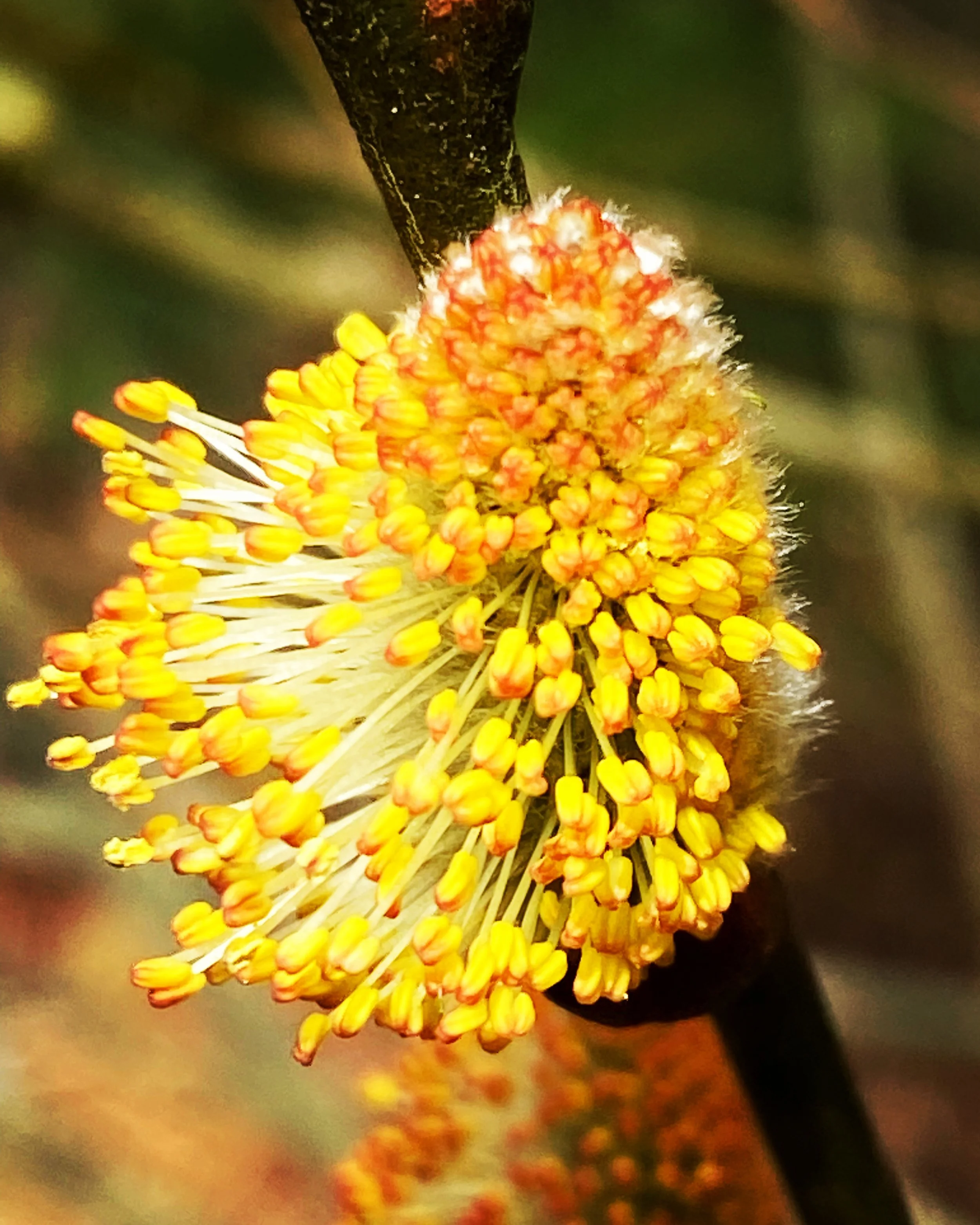 Slow rising. Last one up. Charlie, Suzi and I go out. Starting in the yard, I visit the pussy willows that have passed the catkin phase and into my favorite stage of bloom. Almost Easter time. Today, I am working all day and will not swim. So, I go slow; I want pictures and quiet. What I listen to in the woods is simply birdsong, and the calls of many varieties fill my ears. Nearing the end of my walk I break into a slow jog and it starts to lightly rain. Eager to my desk. Everyone in the household knows I need this time. I have the chance to get to some emails, and a lovely conversation with U-Meleni Mhlabo-Adebo, a Zimbabwean/American performance poet who is the feature for the monthly Journal of Expressive Writing Open Mic this Wednesday. She’s an amazing performer, and we had a warm connection. Then, I produced a 3-hour intensive on finding the right form for your poem with Fleda Brown for the Transformative Language Arts Network; and it went so well. I got a poem draft for myself too, from this photo of the pussy willow. Twenty-five years ago tonight I don’t remember what I was doing. I did not know I would go into labor the next morning with my third child, my youngest, my Franci, and that she would be born the next evening. A quarter of a century ago! My pussy willow in bloom.