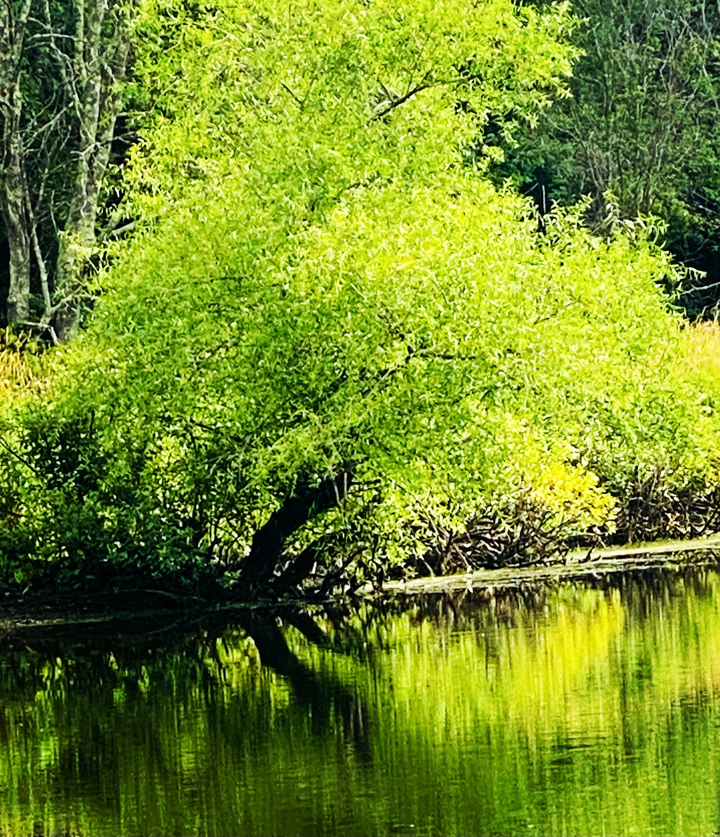 Happily, today’s weather forecast was a fail. All the rain and thunderstorms predicted didn’t materialize. A perfectly sunny and warm and windless July day. Charlie and I have a lovely walk. I have something on my mind and in my heart, and this walk is quiet time, meditating time, feeling time, spirit time. A morning like this, when walk is really like prayer. And prayer is really for the psyche: to feel what one feels, know what one knows. I discovered just what I needed to know that guided me through the day. And then, a spontaneous opportunity with my daughters. The three of us all were available and wanted to swim at the same time. We could, and we did. Ahhhhhh. We put on our suits, drove the quick drive to Farm Pond. And agreed on the best route to take. Not a ripple of wind on the glassy surface. Such warm, invigorating depths of green reflected from trees. We all swam, at our own pace, around the island and back. I went the farthest, but I was the slowest. My daughters are much faster swimmers. We met on shore, happy and invigorated and harmonious. I felt such gratitude for this sweet time. And later, after doing some work, I cheerfully made dinner well in advance. Something heavy on my heart was answered with a good result. My spirit feels quite deeply greened tonight.