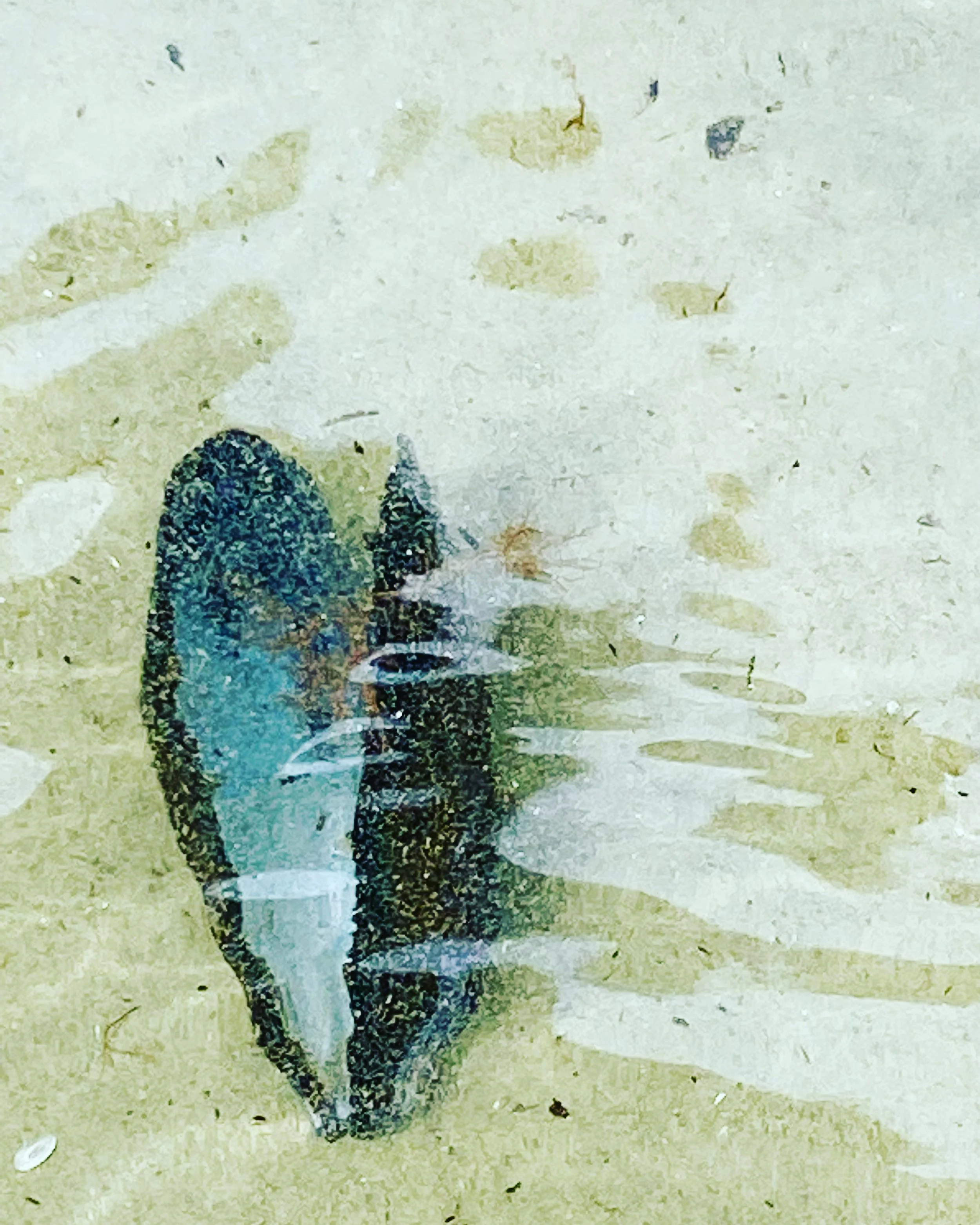 Early up, and cool, almost chilled for the first time in days. The temperature has dropped out of the heat wave. I spend some time working before my walk. A longer walk, exploring. Listening to a wonderful New Yorker podcast interview with the musician Jason Isbell. (I am a big fan.) Then, a dip in the sea. It’s a different sea! Frigid water! My nose numbs and my limbs tingle and my chest burns. I don’t stay in for long. What a dramatic change in temperature! Still, I am very glad I go in. I am all tingly when I get out. A busy, wonderful day, top to bottom. I run my Ukrainian support group, which, as always, is very moving. I run my play lab—coming together so nicely. I read, tonight, in the open mic, my poem Misadventure with peas, published in Bracken. Back now, finishing up prep for tomorrow. I have an e-mail this morning from a journal saying that they had decided not to publish an image of mine that they liked. And asked about my process creating this photo. And said they assumed it wasn’t available any longer. I was kind of bothered, because it seemed strange to me that they were rejecting an image they loved and asking me about it anyway. I decided to just be pleasant and respond by telling them about the image, and saying it was available. So, he wrote right back and said he definitely wants if for their next issue. It’s a favorite of mine. I’m happy it has found this home. I had fun, after lunch, with another walk and finding pictures by the sea.