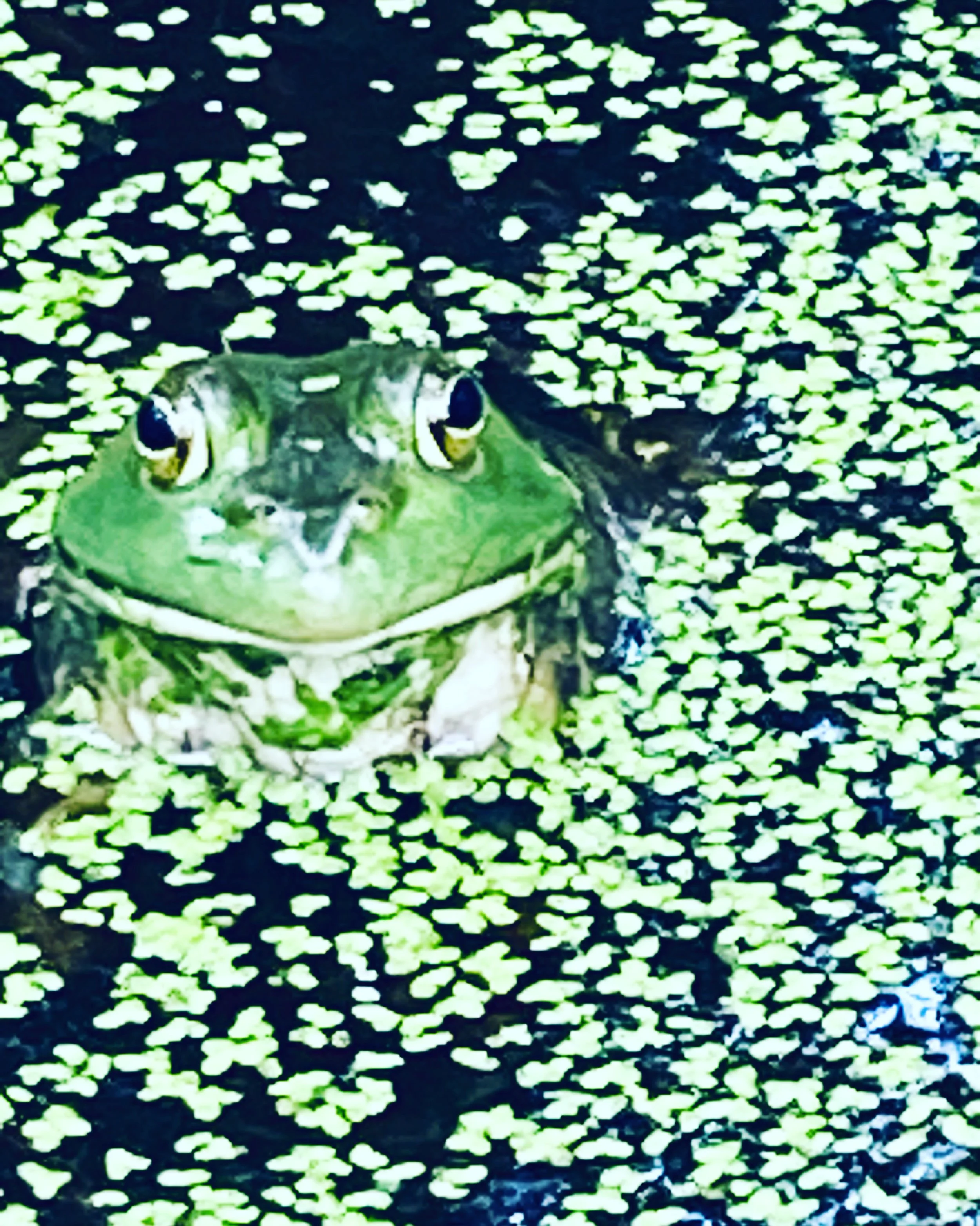 Wild thistle, friend of the milkweed. Oh, the drought continues. But I was happy to see, out my window, signs of rain last night. And the ground was quite wet. But the brook is bone dry. The plants are parched. The thistle is hearty in bloom, though. I despair a bit about butterflies. How few there are! The blooms that attract them are struggling, particularly the bee balm which has withered. In the meadow I walk past on my morning walk with Charlie the milkweed has gone black. No monarchs in sight. I pass the swamp and the friendliest frog is just sitting there, catching my eye. Hello! I linger with Charlie in Rocky Narrows at the boat ramp because there is a yellow lab, Tillie, and she is romping in the river playing with a fun squeaky tennis ball. Charlie has a fun time chasing and splashing with the ball. He does not want to go! Finally, we part from Tillie and when I am home I order two of those balls for him. His spirit is revived. I have a bit of work to do; prep for my Islanders Write workshop Sunday on Martha’s Vineyard. In the afternoon I have a swim in the pond. Very bath-like temp. And the sweetest breeze rippling the surface. I have not been here for a week, glad to be back, and I take a nice swim. In the late afternoon I return to the pond with the Special One who romps and splashes and does his best to swim on his own and stands on his tiptoes with water up to his chin and grins and shouts and squeals for joy.