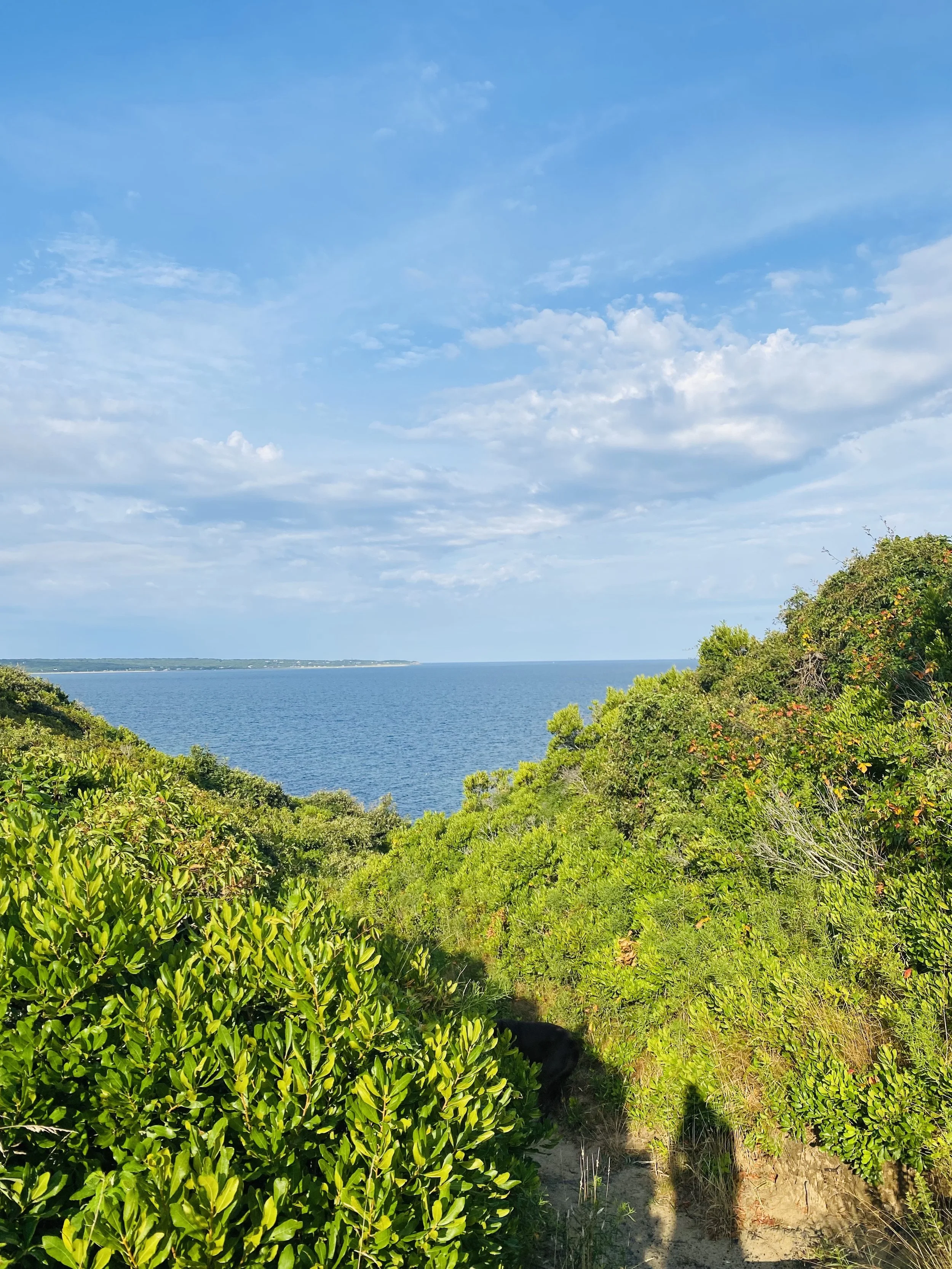My son arrived, a bit after noon. My husband picked him up on the ferry; we went for the afternoon with late lunch and Charlie packed across the little gap to Chappaquidick. It was cooler today, and cloudy until the very last of the afternoon––no, it was evening by then when the sun warmed our backs as we sat in sugary sand at the edge of the sea with no one in sight. My son read us some passages from a book he’s reading on family councils. We also had a walk, him and me, and Charlie, up the vacant beach. Met a wounded cormorant who could swim but not fly. No helping it. We swam in the warm, so warm water, the mild waves, the delicious warmth and rolling. We stayed on the beach until we were all hungry for dinner. Seafood, what else? The weekend has begun. I am pleased, tonight, to feel the progress I made on my manuscript. My editor likes my new title. It’s just about ready to upload for the publisher to edit and design. A good way to start this weekend.