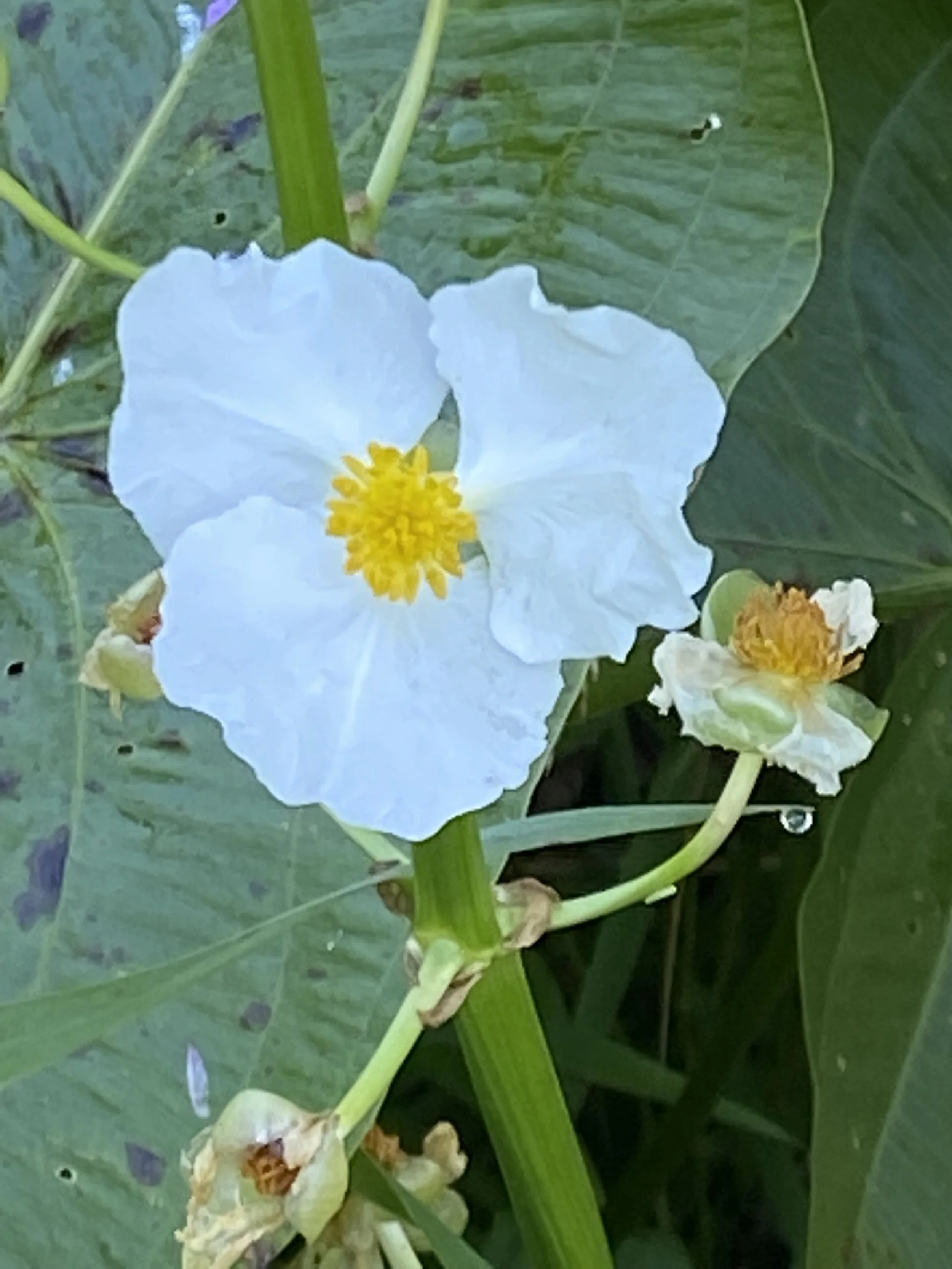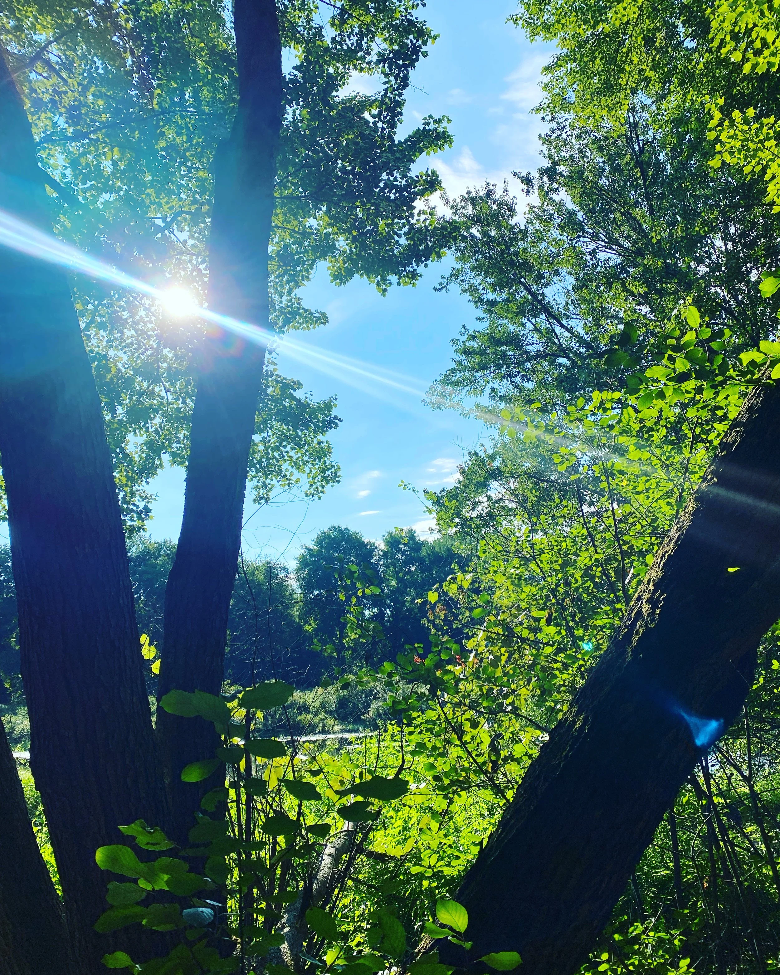 My eyes are open in bed. Someone very short is at my door, urging me to “come.” Irresistible request. Outdoors, the destination. Lovely summer morning. We are looking for drama in the sky. Clouds, all shapes. We gaze and gaze. Day begins. After breakfast, I take Charlie for a long ramble. I pass the meadow in Rocky Narrows that has a host of milkweed plants. I see one black butterfly out of the corner of my eye. No monarchs––the plants that gave me a poem two summers ago (July 6th––To the Lake) are black with rot from drought. Sigh. But, passing the wetlands where the swamp is full of fresh cattails, where there is water from the river, the arrowhead bloom next to silver-blue bright dogberries. While in the woods on my walk I have a session with a client from New York. She walks during our session as well. We have mutually discovered that walking together in this way is a wonderful way to hold our session: outdoors, with our lungs working. Everything sensory seems to enhance my ability to be a focused listener. I reach home when our call is done. I take the Special One for a swim in the late afternoon. The pond is shallow, unfresh. In need of rain. Tonight I lead the Open Mic for the Journal of Expressive Writing. Our feature is a writer from Egypt, Riham Adly. Very moving. Flash fiction, as an Arab woman, is her superpower, she says, finding self-expression in English. Now, I am tired; and grateful for this day, start to finish.